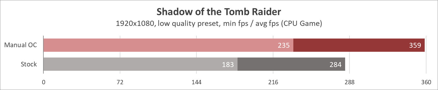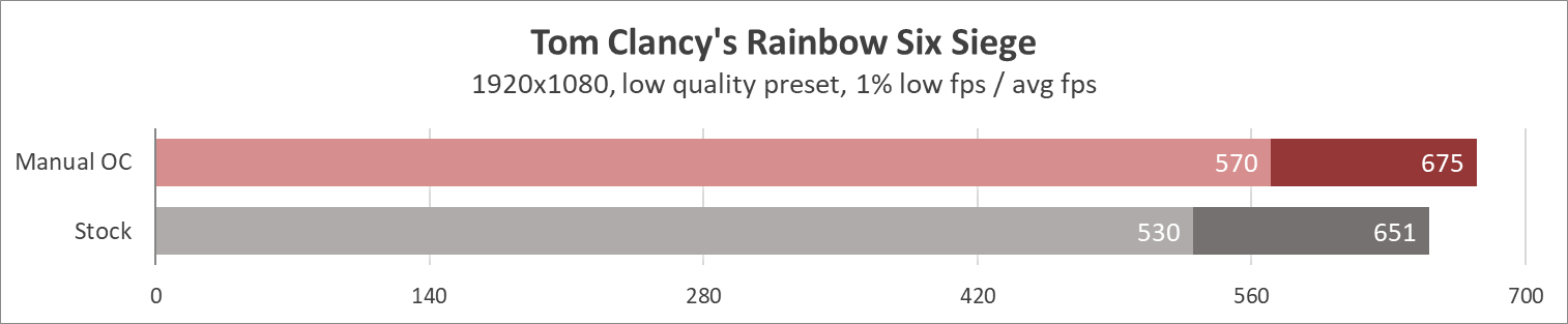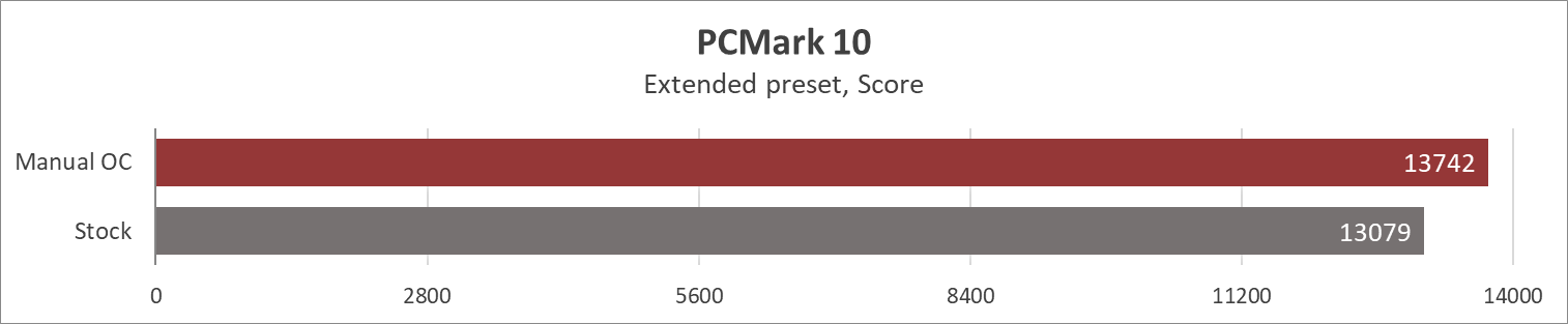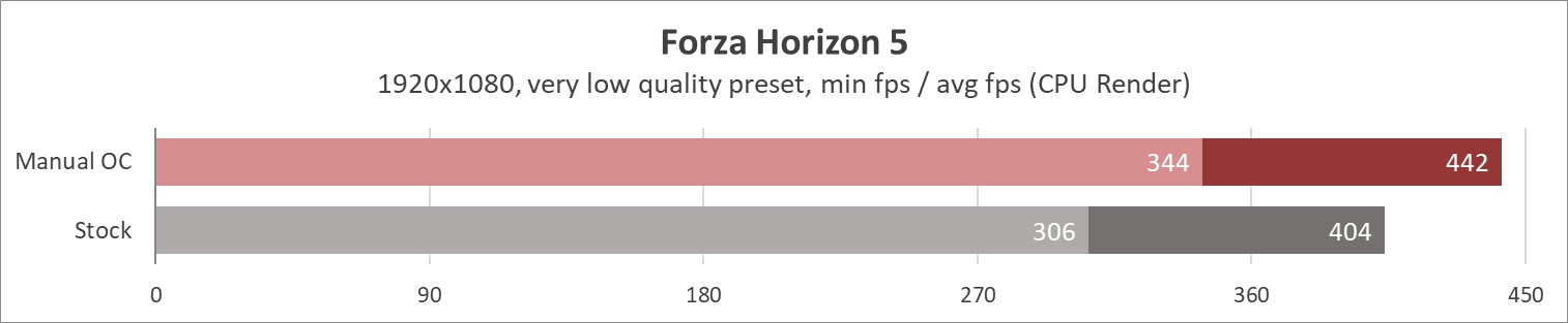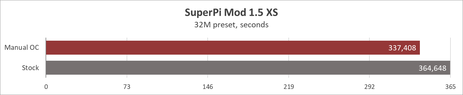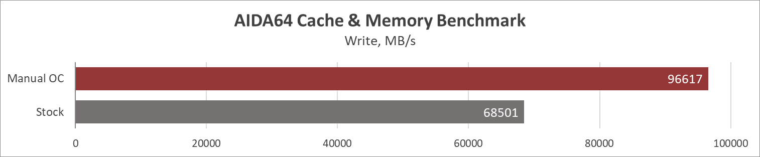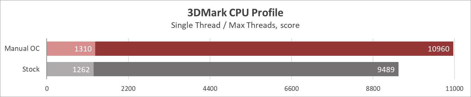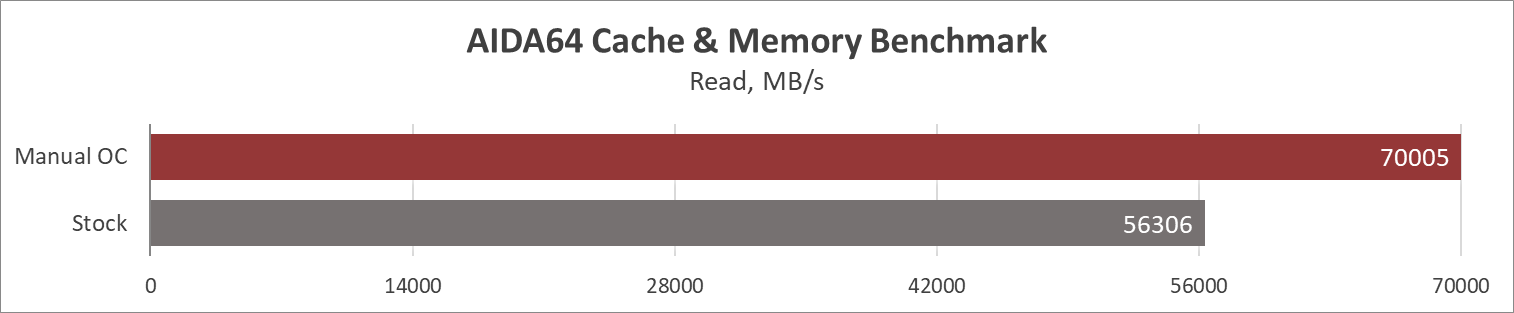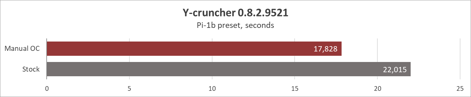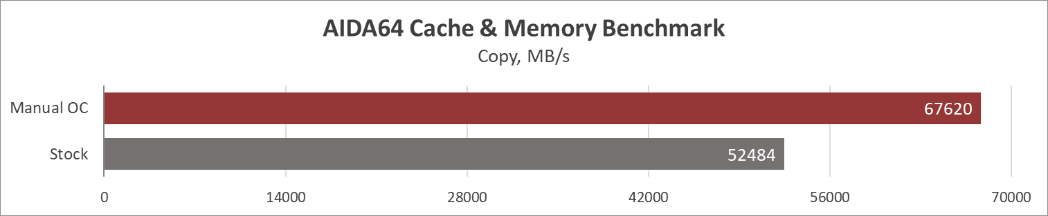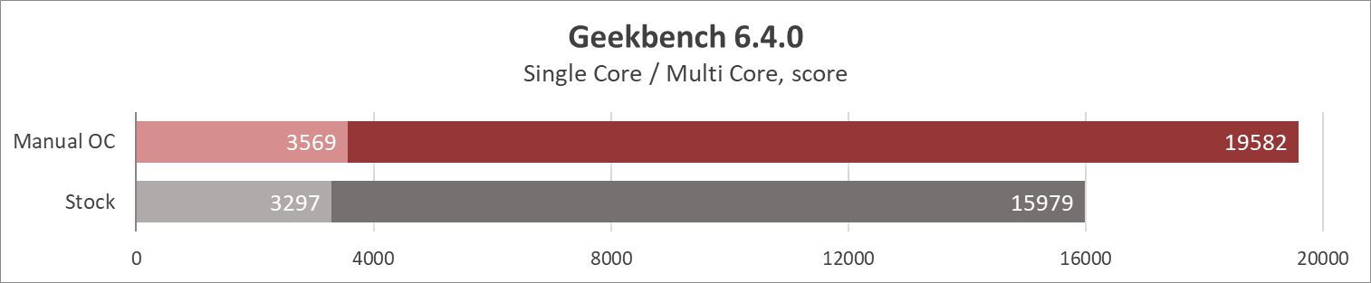 Нахабний й зарозумілий ручний режим розгону змусив плату утримувати середню частоту на 5352,4 МГц з максимальним прискоренням одного ядра до 5668,2 МГц.