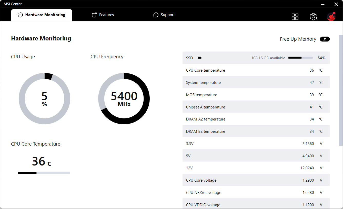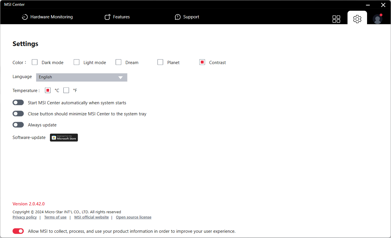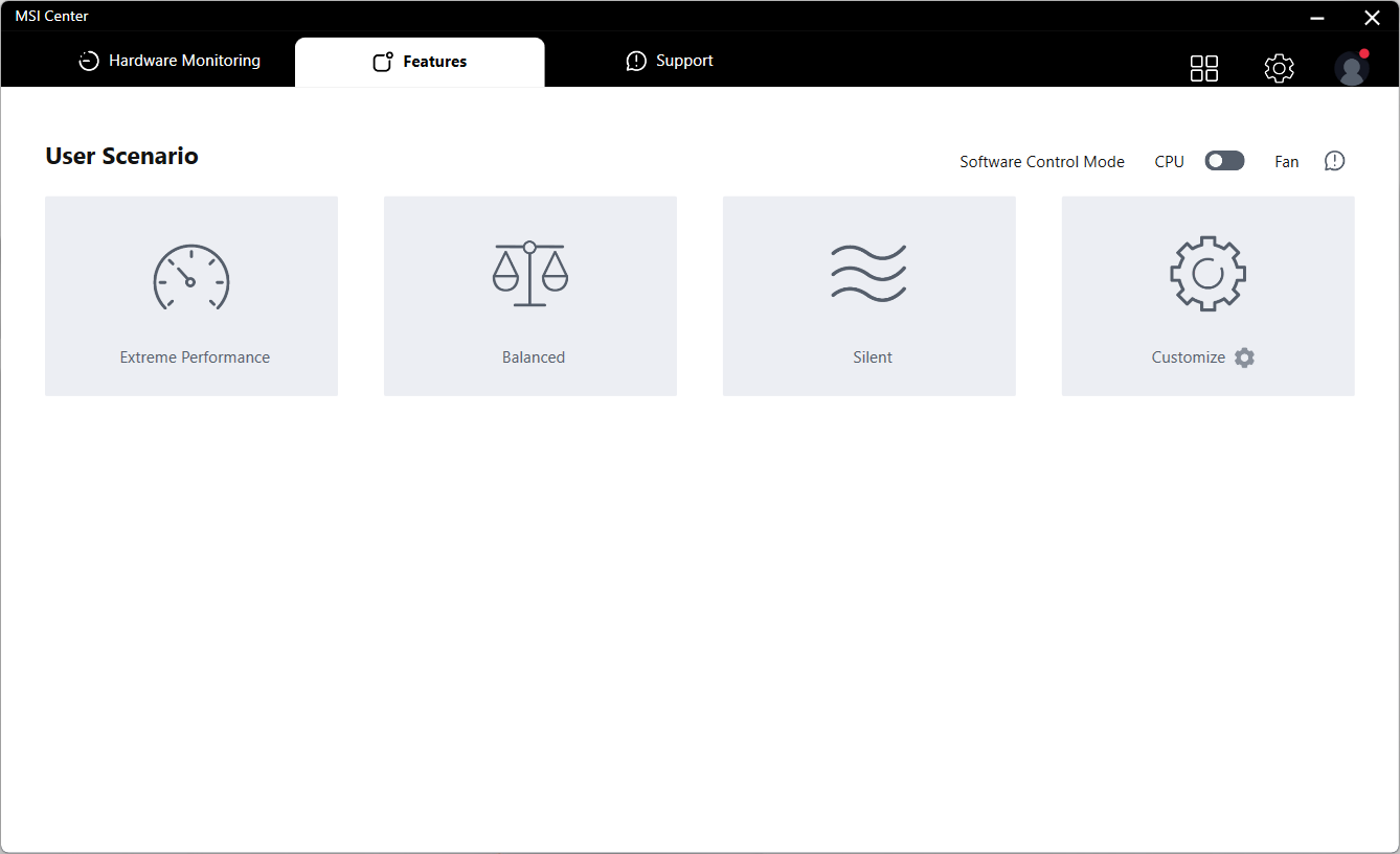 Головне ядро фірмового ПЗ виробника — MSI Center. Це модульний застосунок, який користувач самостійно налаштовує під свої завдання. Він може бути простим засобом моніторингу системи та материнської плати, але якщо необхідно — перетвориться на функціональний програмний комплекс з багатими можливостями.