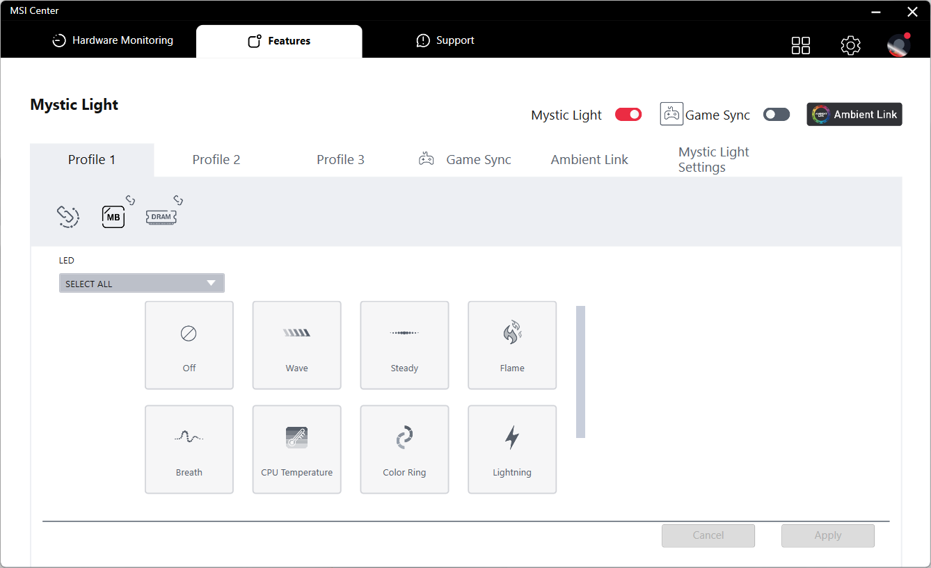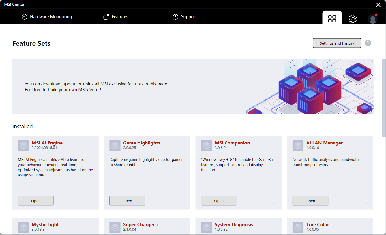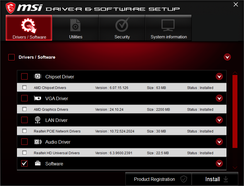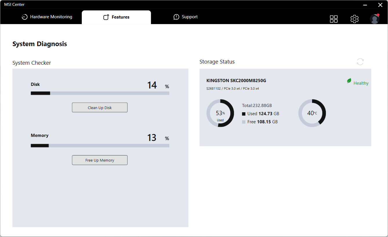 Головне ядро фірмового ПЗ виробника — MSI Center. Це модульний застосунок, який користувач самостійно налаштовує під свої завдання. Він може бути простим засобом моніторингу системи та материнської плати, але якщо необхідно — перетвориться на функціональний програмний комплекс з багатими можливостями.