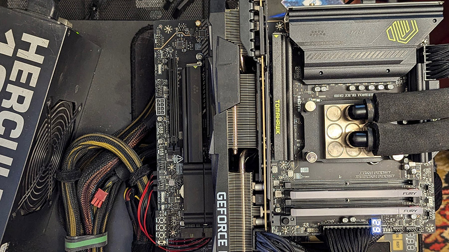 Привернути увагу на себе змушує додатковий конектор живлення PCIe 8-pin — на сьогодні він вже не призначений для додаткового живлення слотів PCIe для CrossFire/SLI як раніше, він призначений для додаткового живлення USB4.