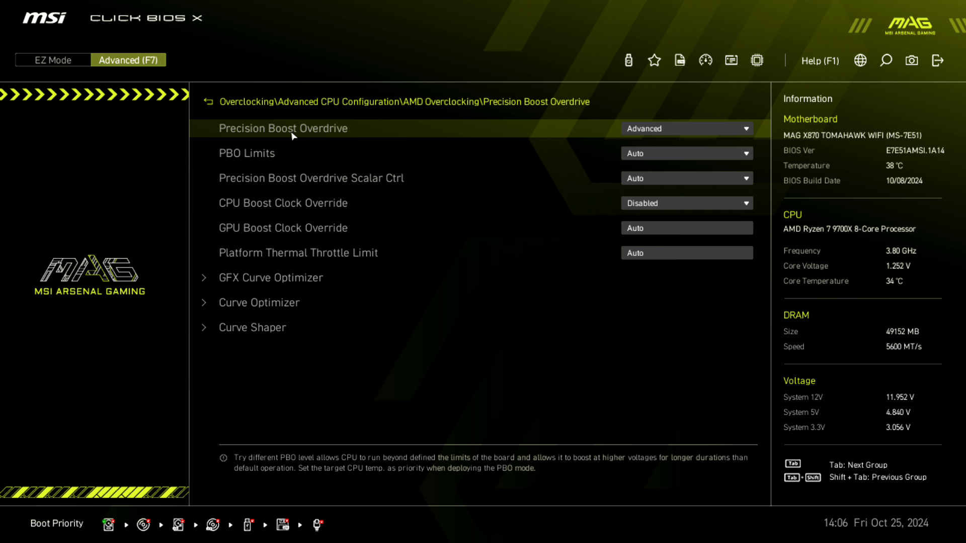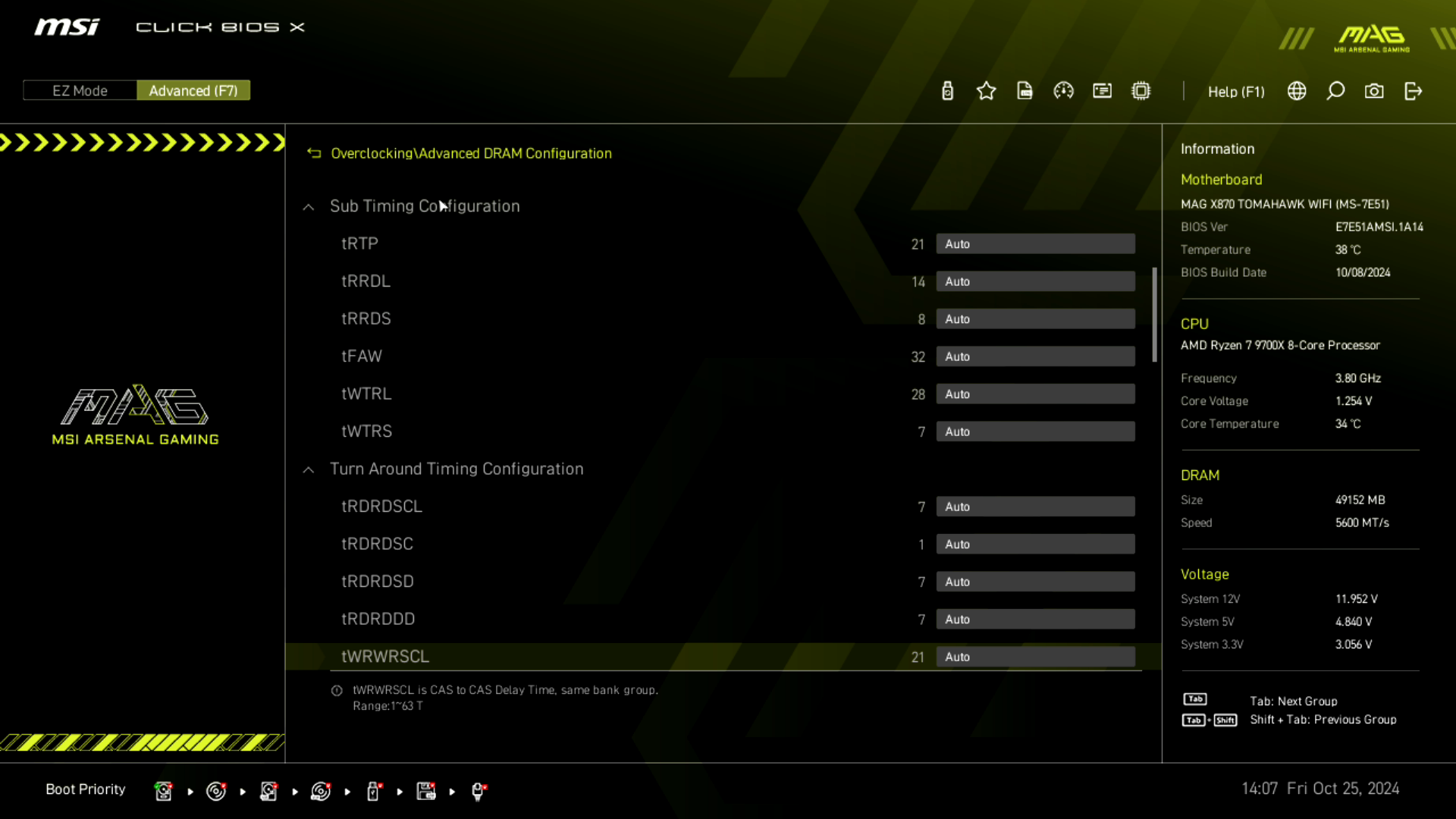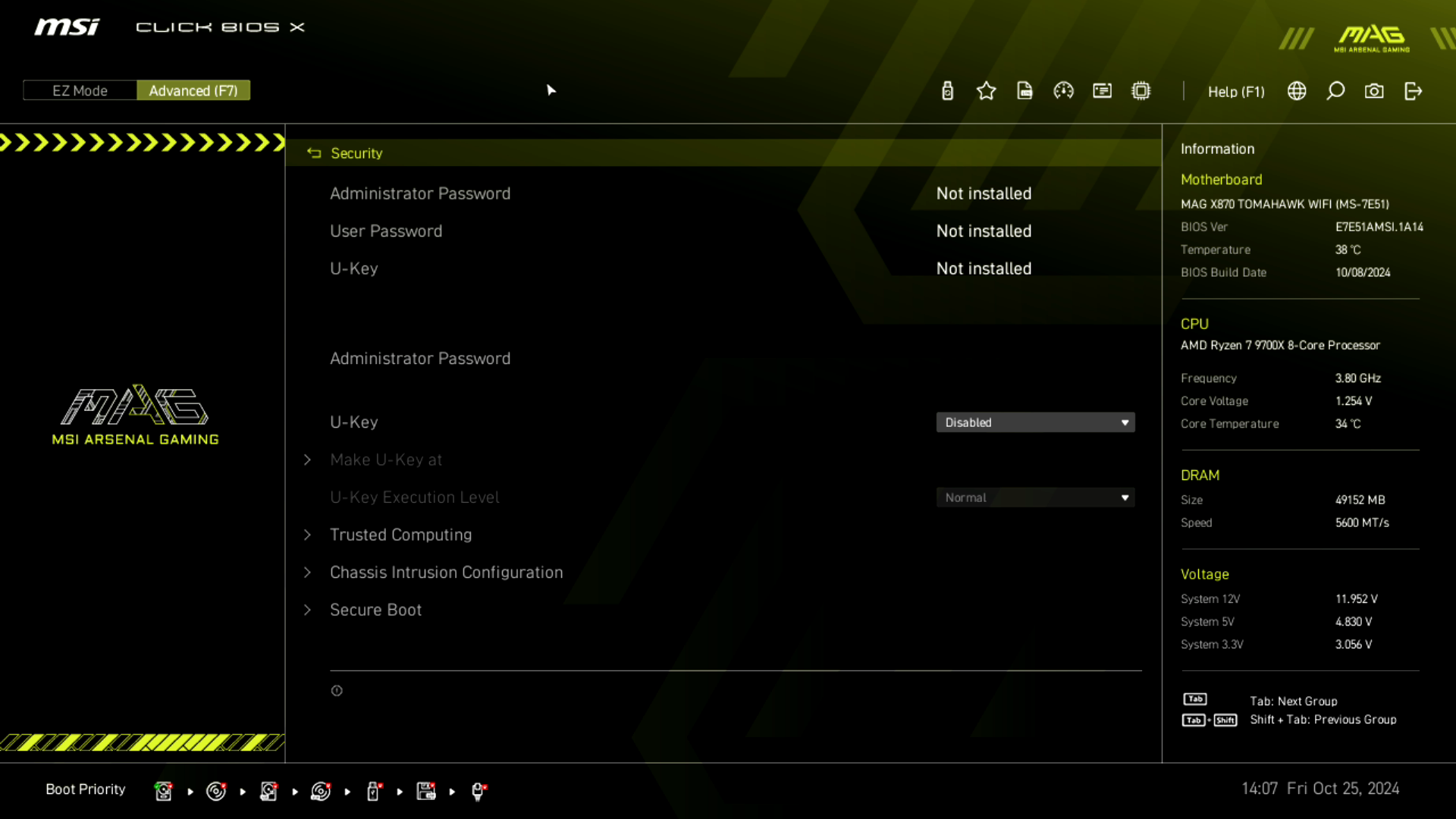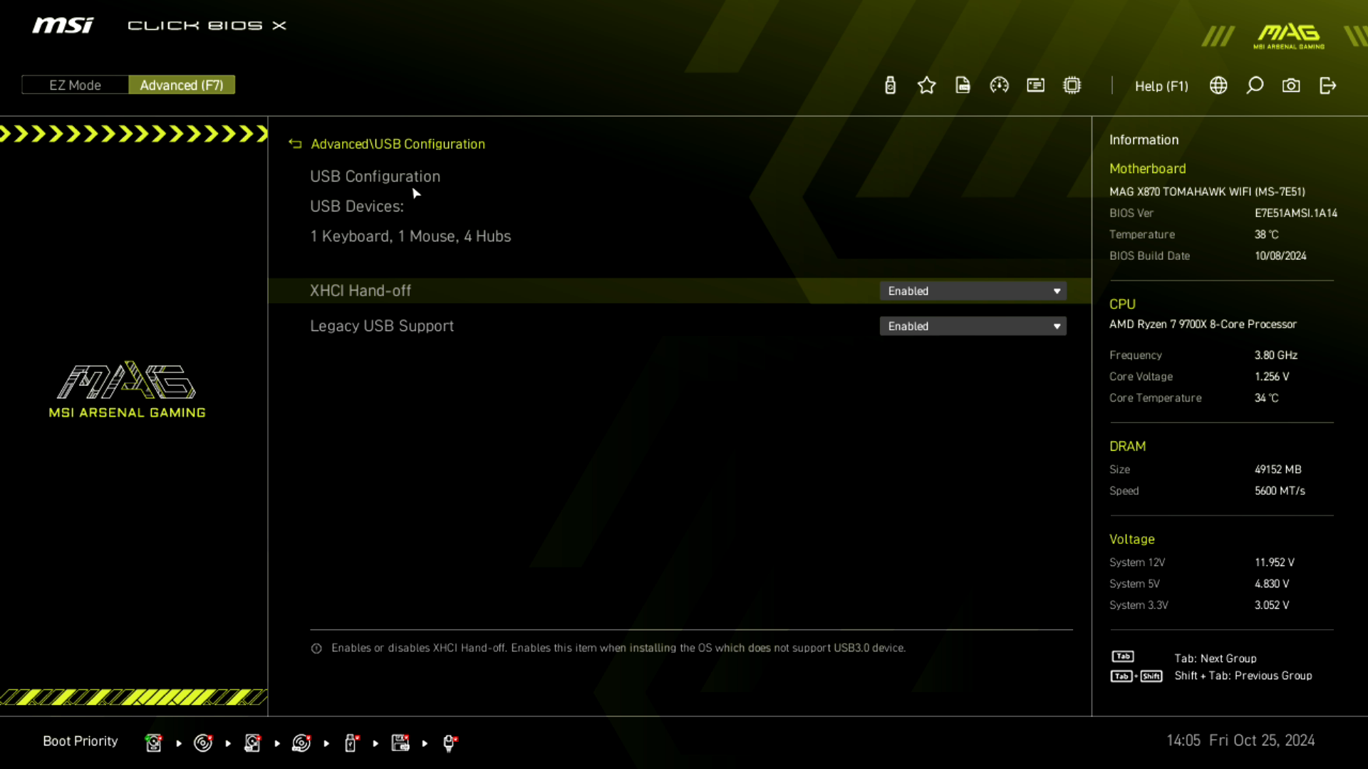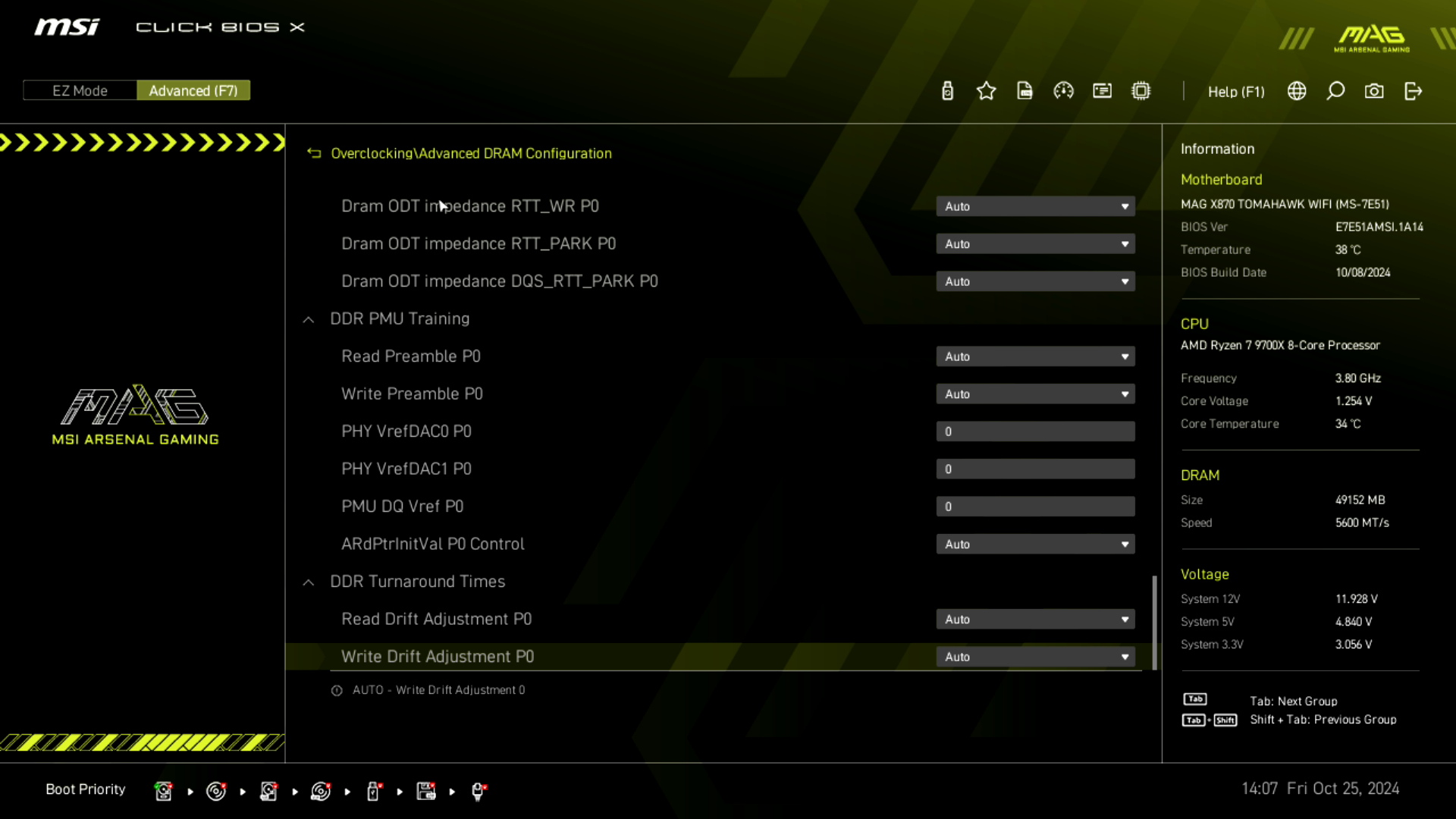 - материнська плата: MSI MAG X870 TOMAHAWK WIFI (UEFI 1.A14, AGESA 1.2.0.2);