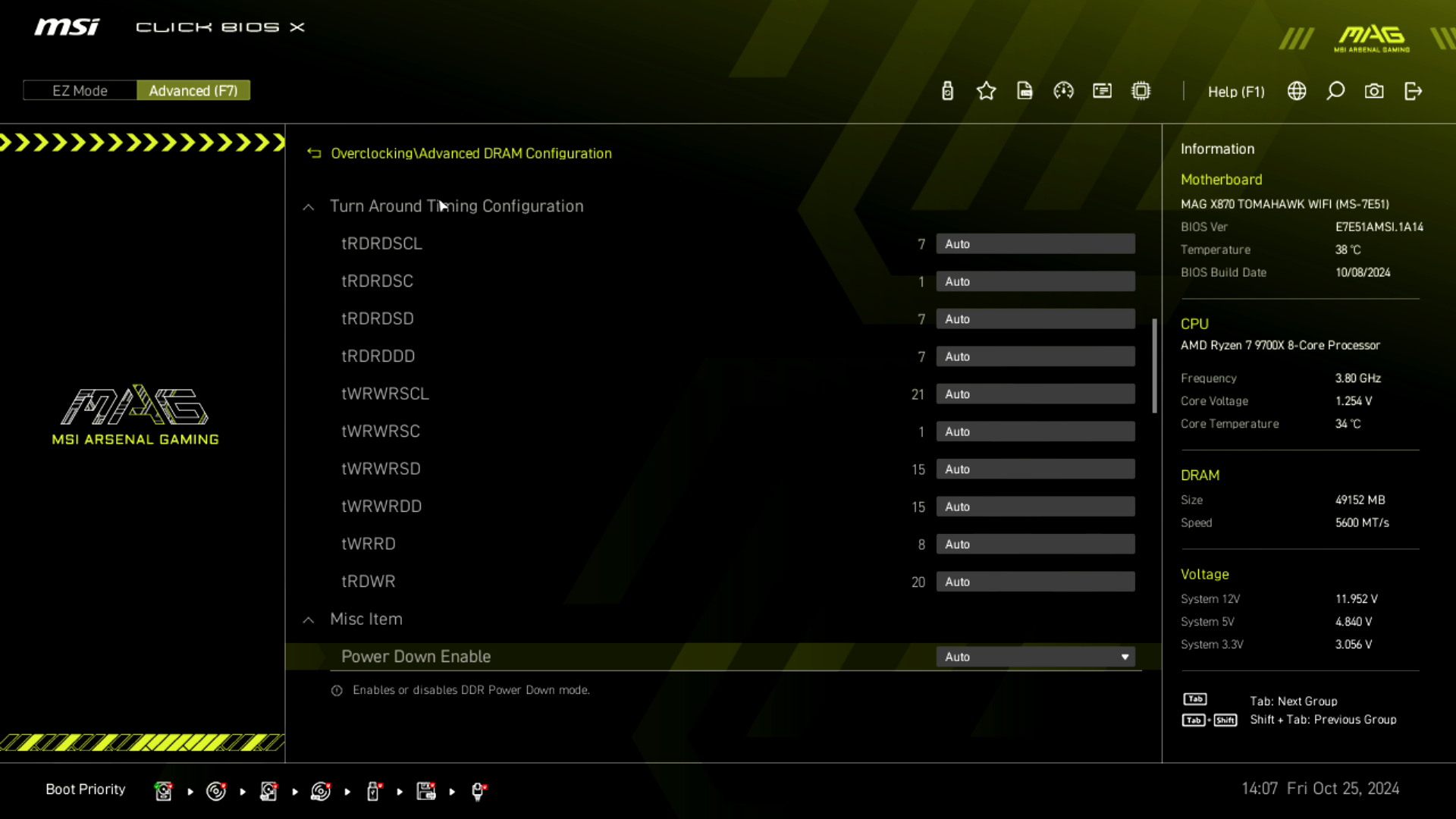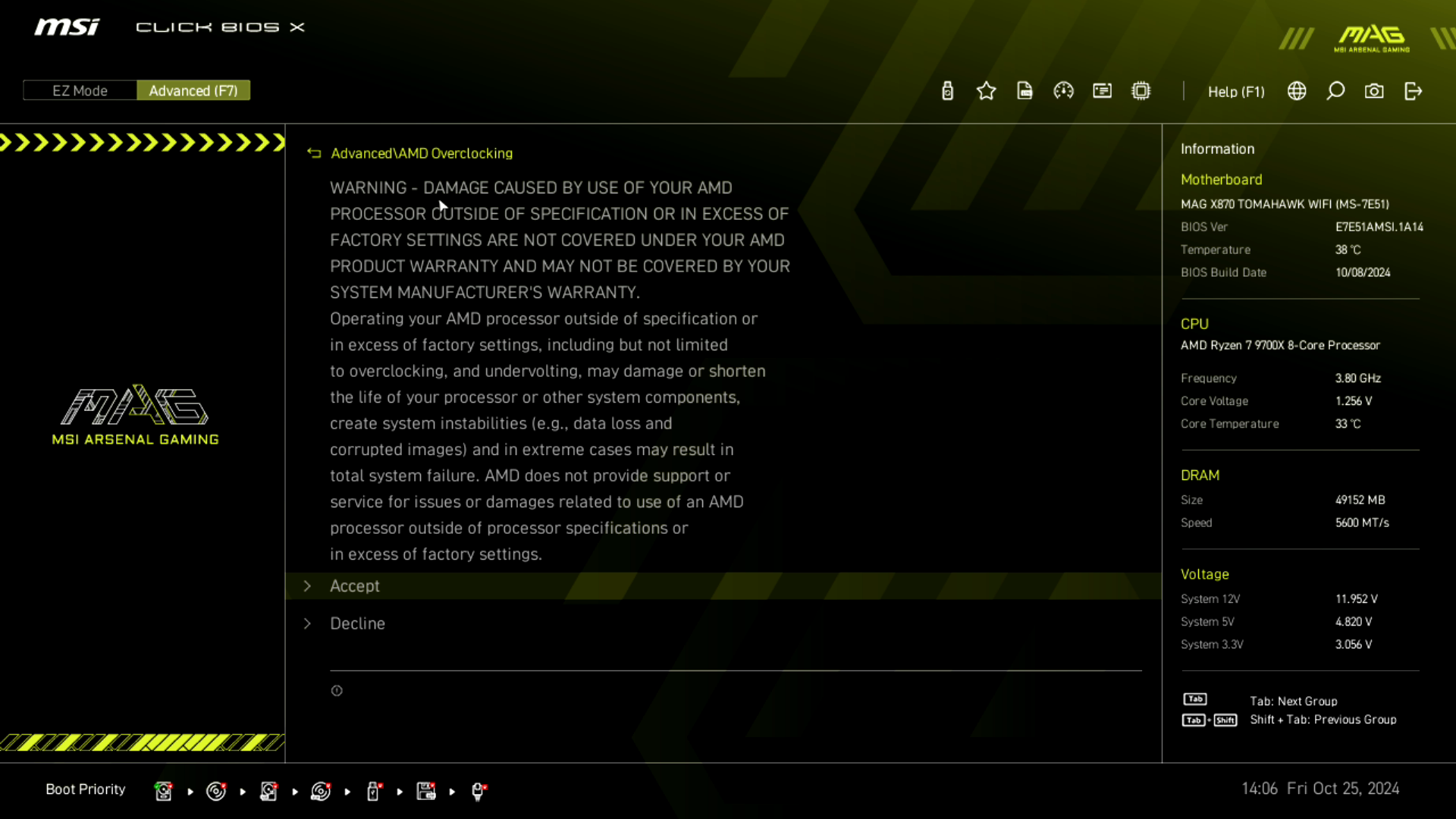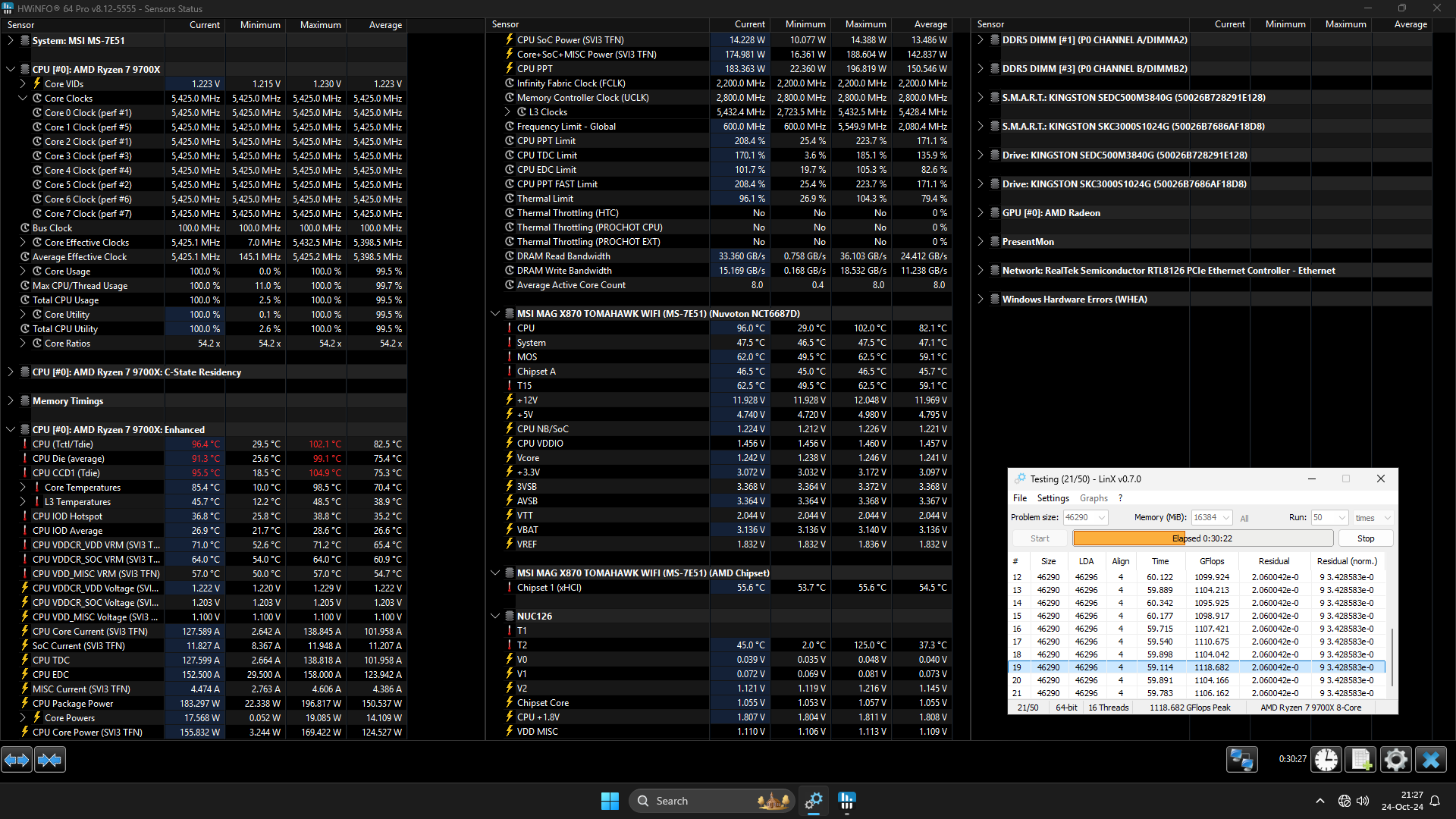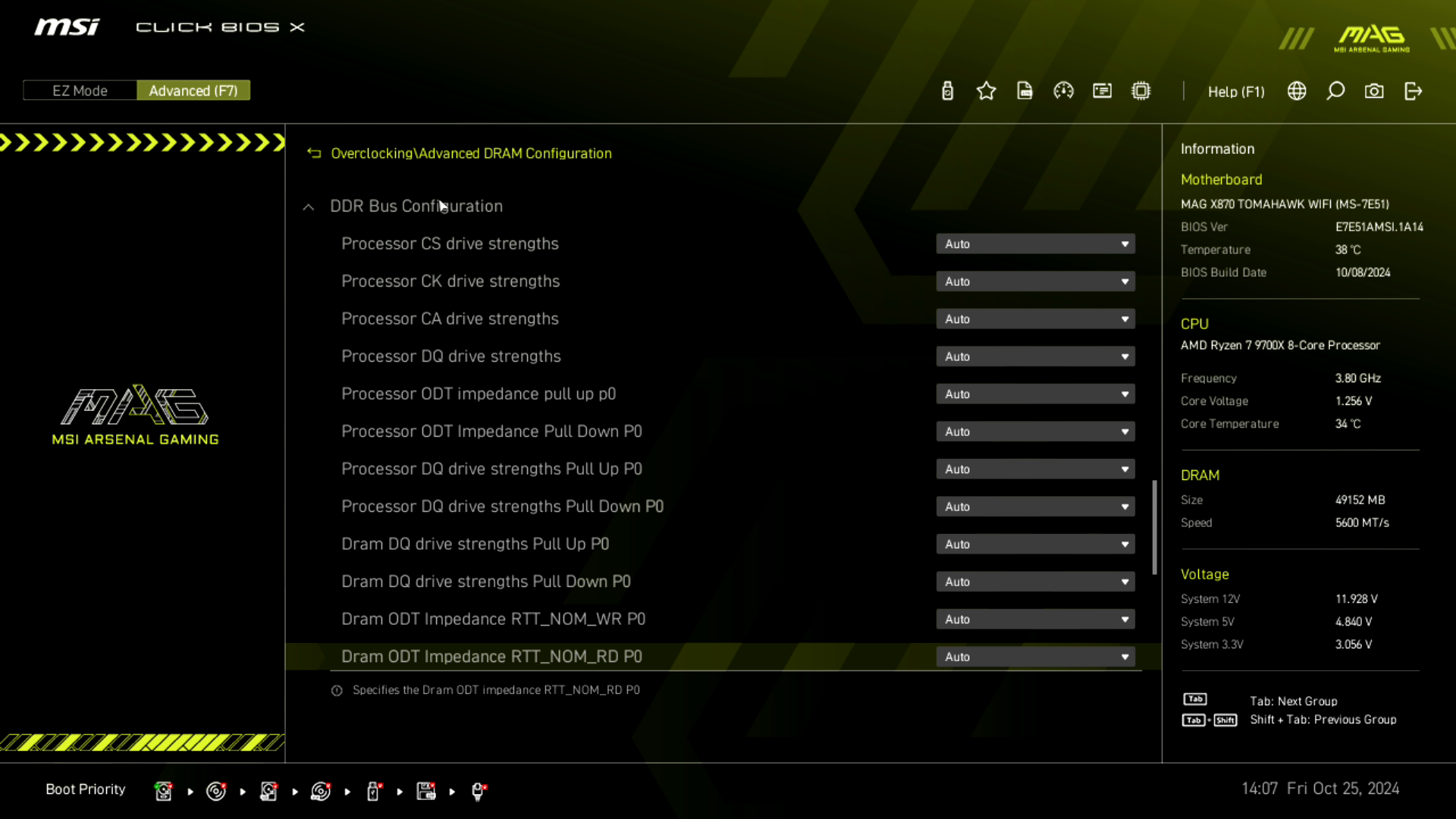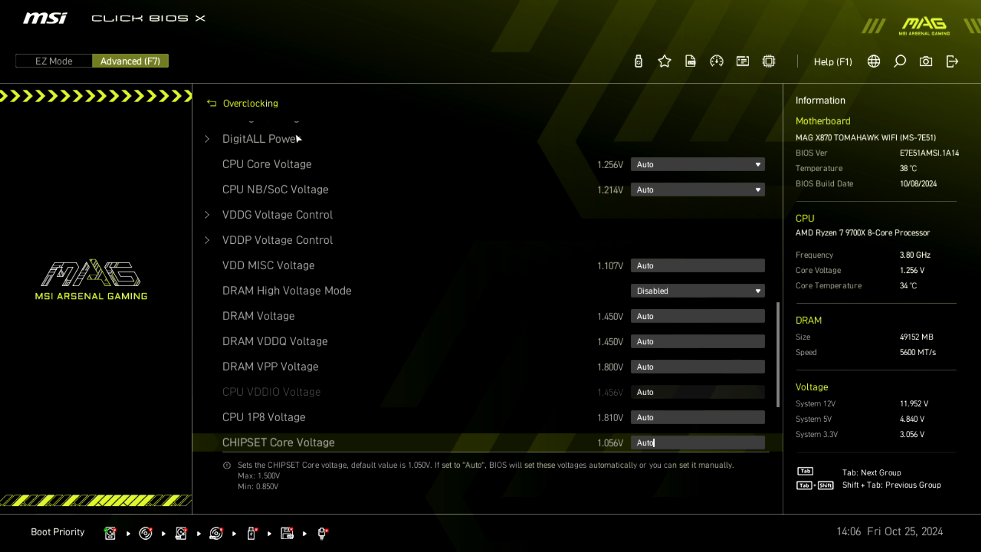 - материнська плата: MSI MAG X870 TOMAHAWK WIFI (UEFI 1.A14, AGESA 1.2.0.2);