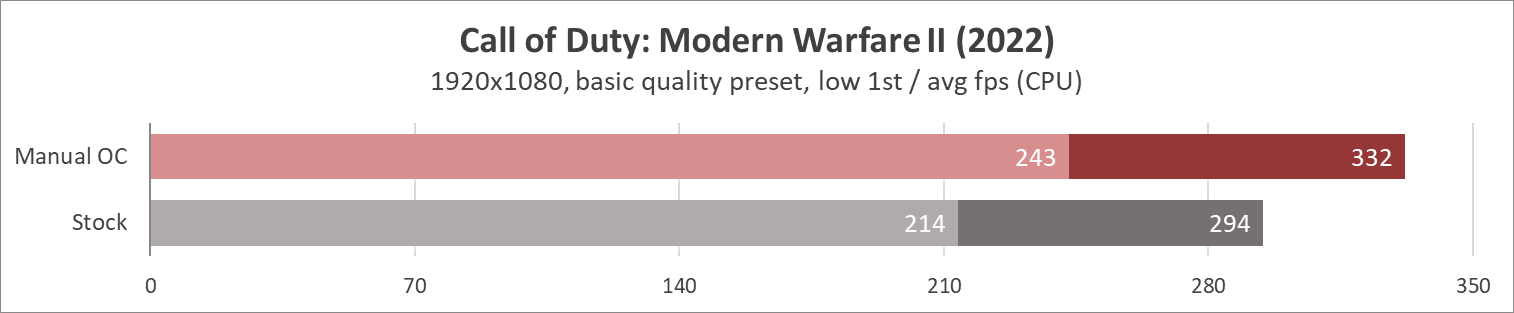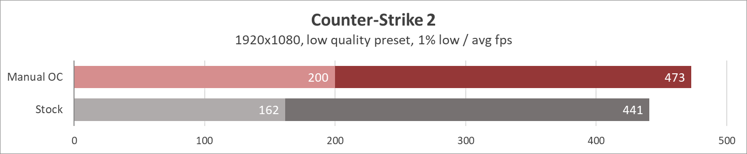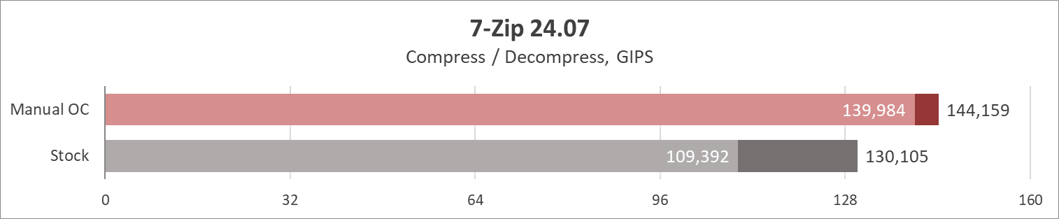 Процесор було зафіксовано по частоті на всіх ядрах на 5425 МГц, FCLK працював на частоті 2200 МГц, а оперативна пам’ять, своєю чергою, працювала в режимі DDR5-7600 CL36-48-48-34 2T. Контролер пам’яті працював в режимі 1:2. Ліміти енергоспоживання знято, а максимальна температура процесора розширена до 110 градусів.