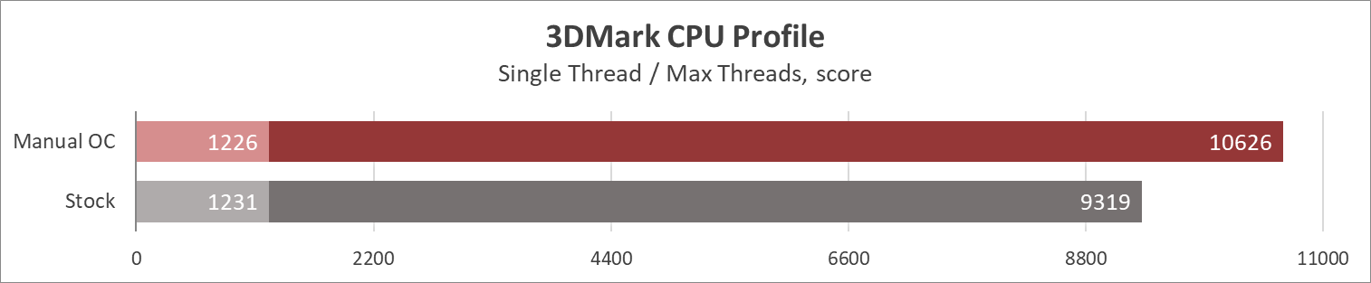 В режимі навантаження при типових налаштуваннях було забезпечено середню частоту всіх ядер на рівні 4430,5 МГц з максимальним прискоренням одного ядра до 5540 МГц.