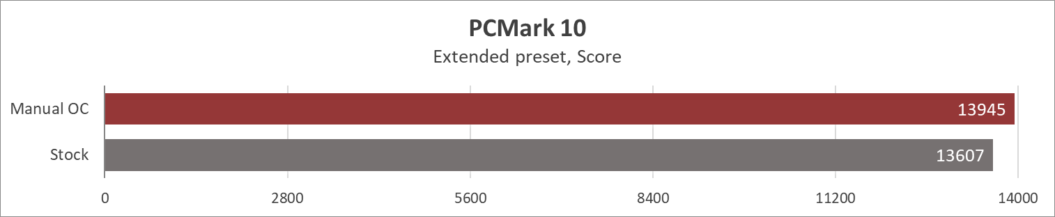 Типові налаштування аналогічні OPTIMIZED_DEFAULTS, виключення — частота пам'яті, що встановлена у режимі DDR5-5600 з таймінгами JEDEC (максимальна частота без префіксу «OC» в специфікаціях процесора). Управління обертами вентилятора за фабричним налаштуванням — автоматичне. Для наближення до стандартних умов експлуатації в операційній системі Memory_integrity та Core_isolation не вимикалися.