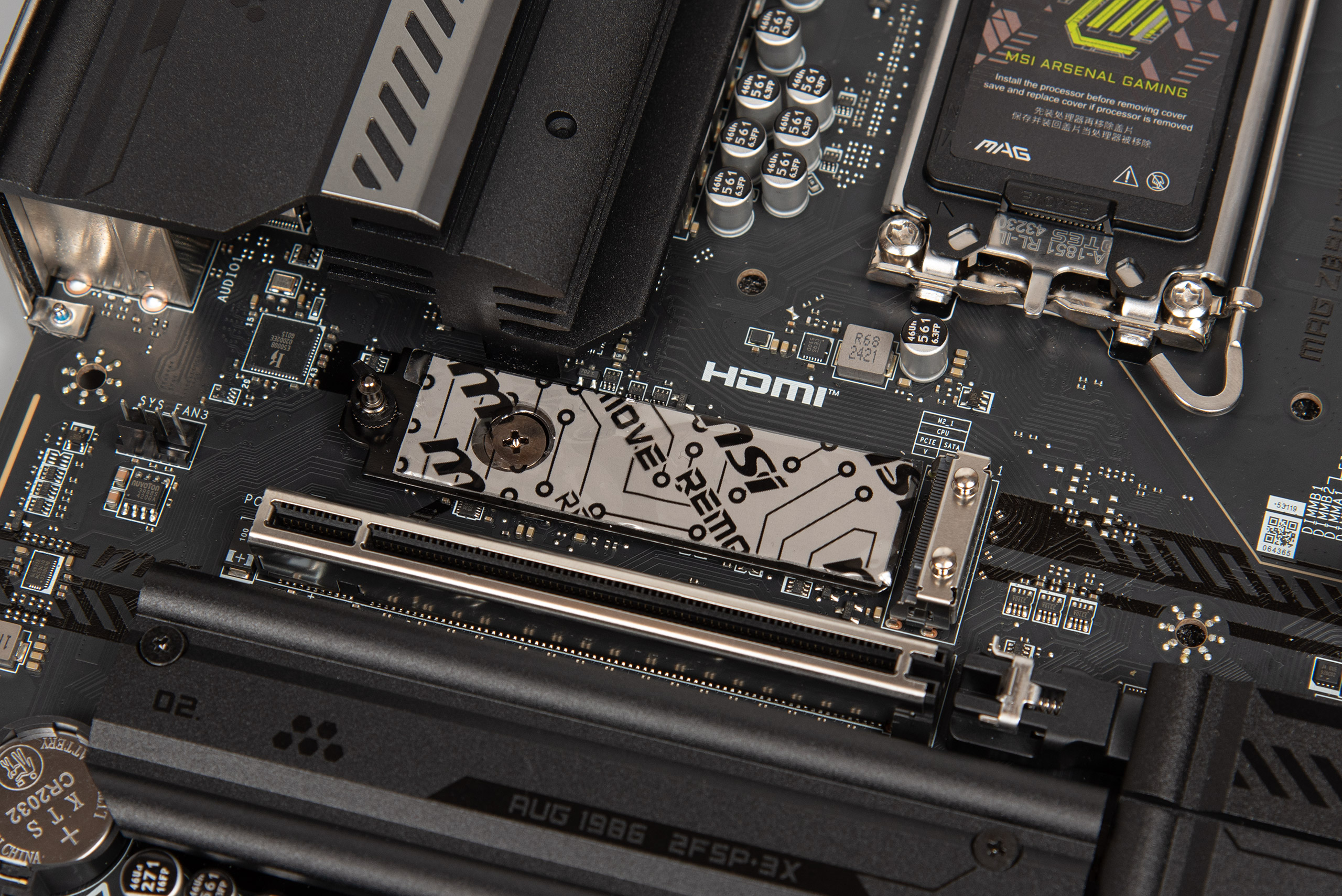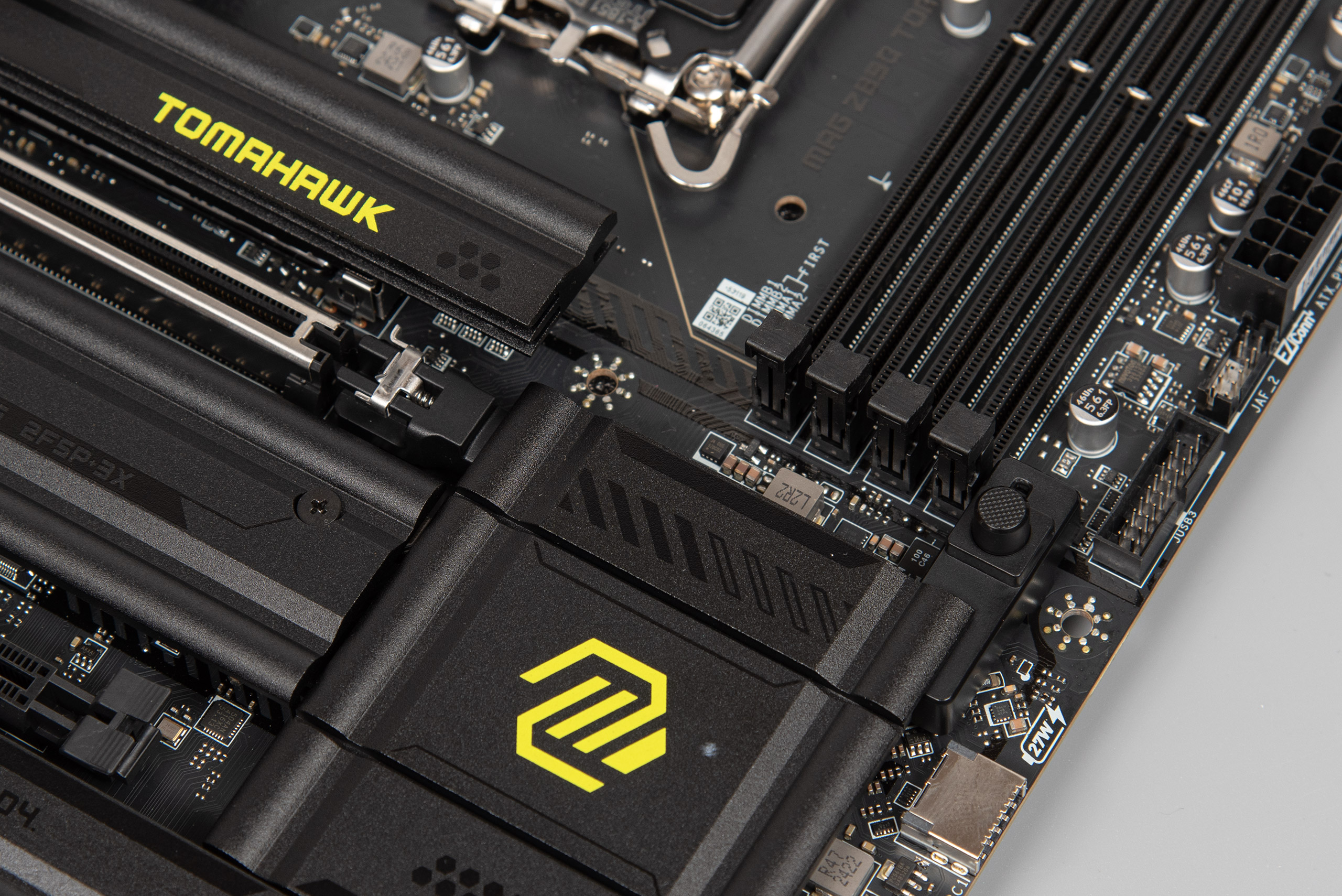 Головний процесорний слот M2_1 має не просто радіатор, а повноцінний механізм встановлення голими руками EZ M.2 Shield Frozr II.
