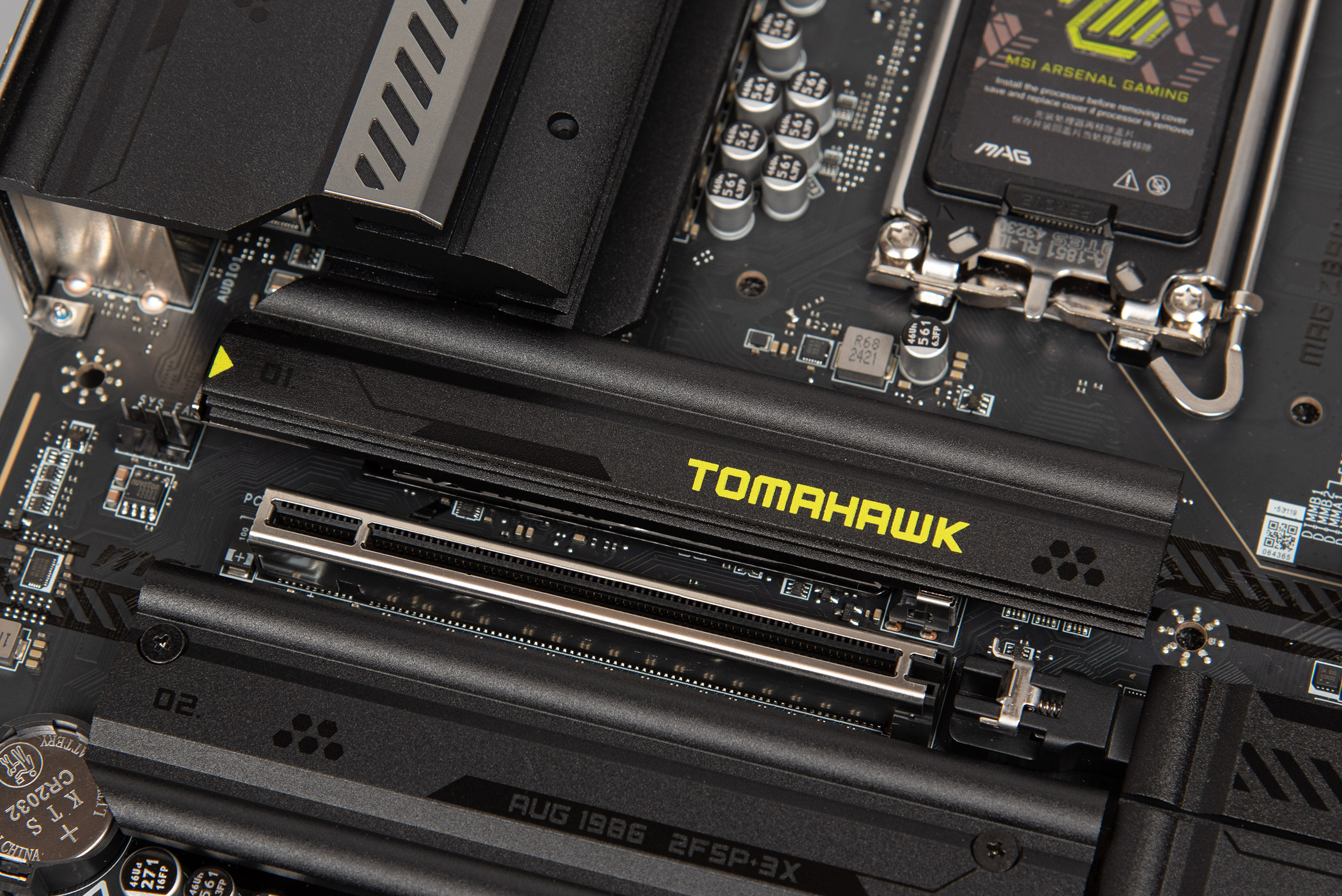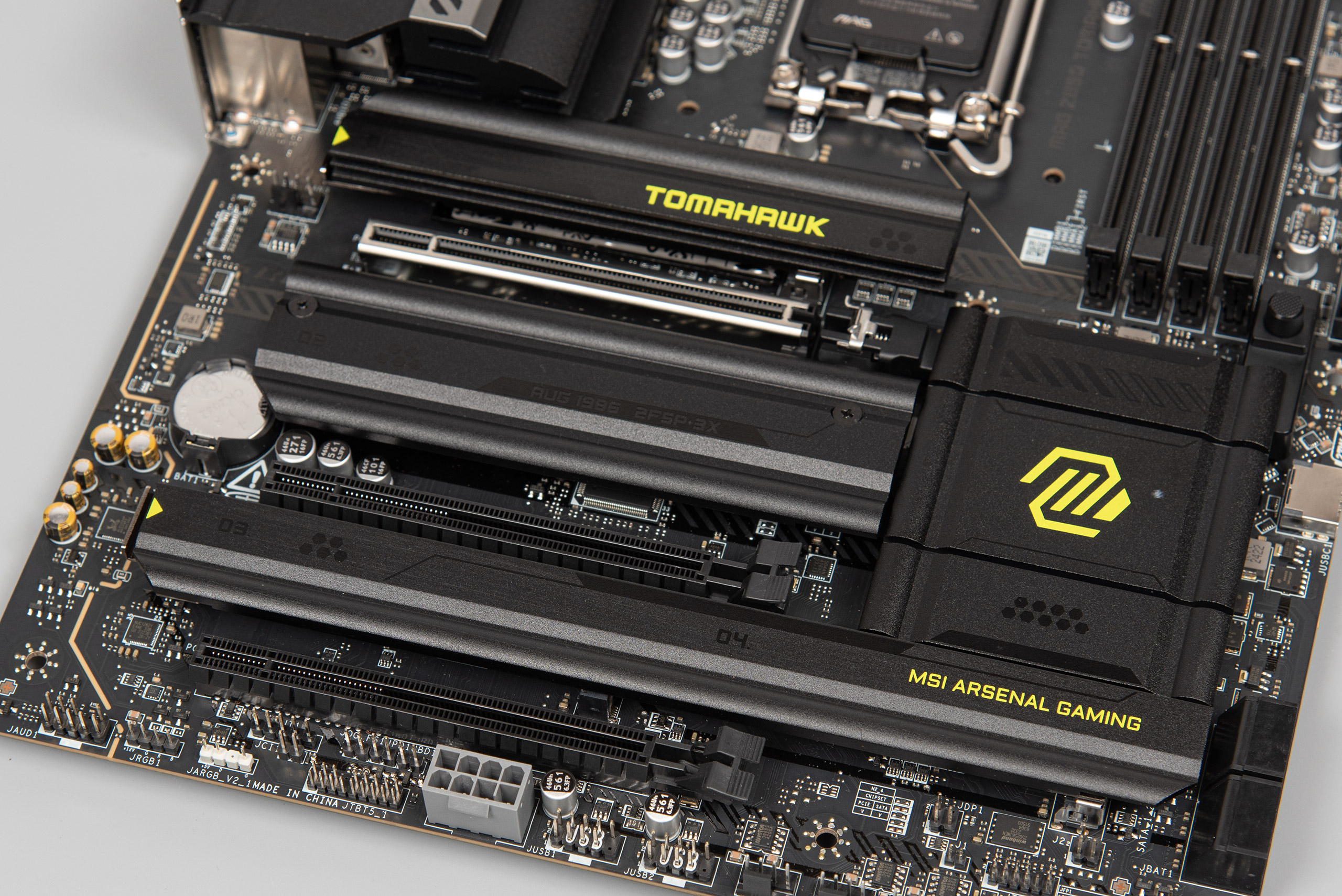 Інші слоти під’єднано до чипсета, а радіатор в них спільний. Цей радіатор також має механізм встановлення голими руками.