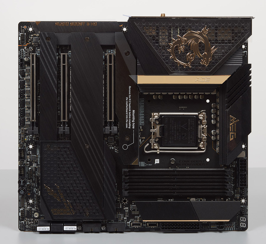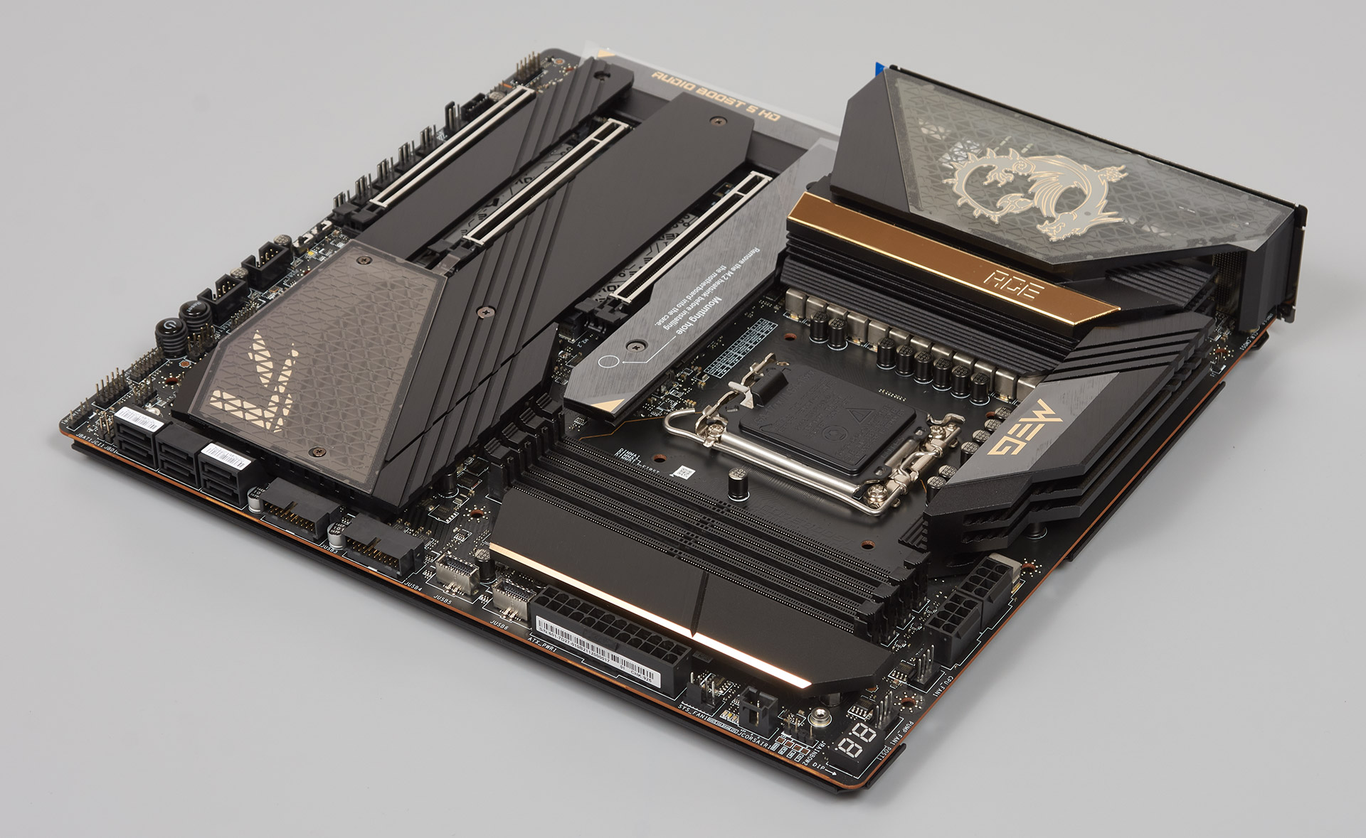 Щоб приборкати флагманські процесори Alder Lake на межі своїх можливостей, знадобиться не тільки «прокачаний» на всі сто успіх, необхідно також подбати про ефективне охолодження і, звичайно ж, мати материнську плату вищого ешелону. Посилена підсистема живлення на 22 фази, серйозна система охолодження, готовність працювати при температурах нижче нуля, а також серйозне оснащення, яке зажадало для себе формфактору EATX. І все це у MSI MEG Z690 Ace.