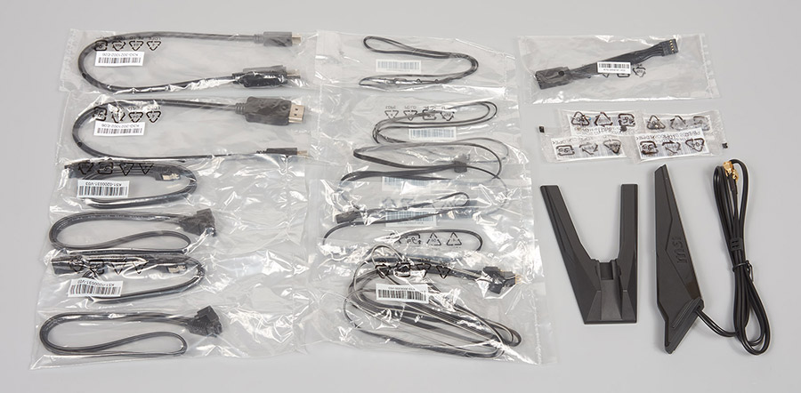 - чотири чорні SATA-кабелі з металевими засувками (два кутові, два прямі);