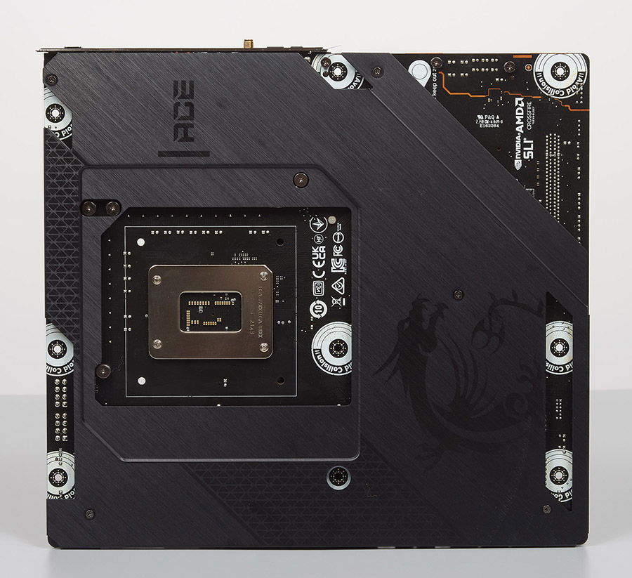 Зворотний бік посилено каркасом, який, крім очевидної функції додаткової жорсткості, також бере участь в охолодженні зони VRM.