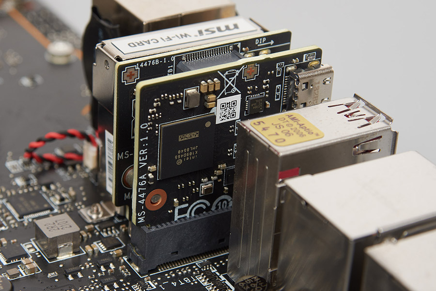 Мережеві можливості реалізовані за допомогою двох мережевих карт Intel I225V (2,5G), за Bluetooth 5.2 та бездротовий канал 2,4/5/6 ГГц відповідає Intel Wi-Fi 6E AX210. Роз'єми Thunderbolt 4 і mini DP виведені через окрему плату.