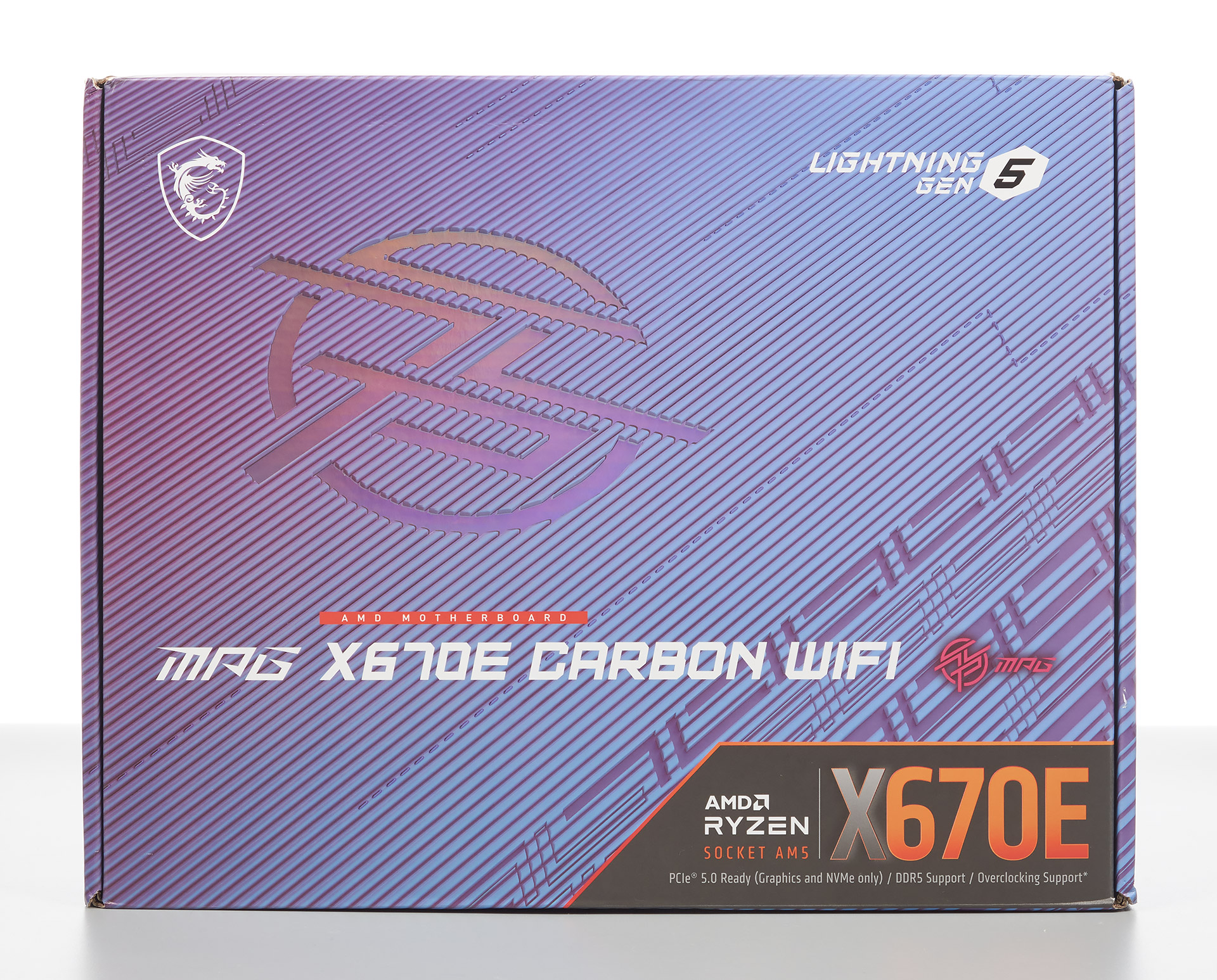 Материнська плата MPG X670E Carbon WIFI зустрічає свого нового господаря яскравою коробкою середніх розмірів.