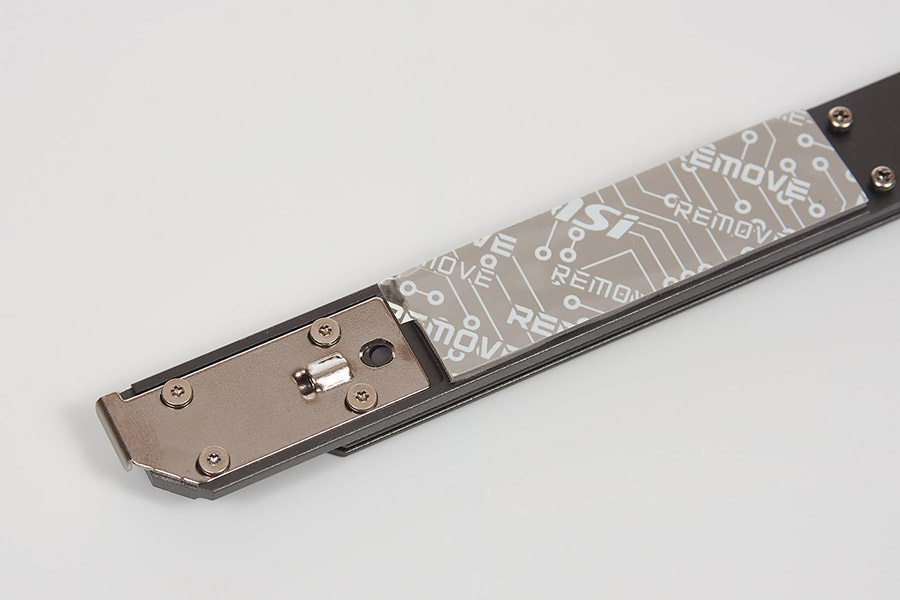 Традиційно чорна гама, більшість текстоліту прихована за радіаторами. Все вірно, майже ніякого пластику, і це сильна сторона плати. Жодних фальш-панелей або елементів пластику в районі I/O-панелі, або зони слотів розширення, всі ці конструкції — алюмінієві радіатори. Заводський RGB представлений драконом, що світиться, на верхньому радіаторі.