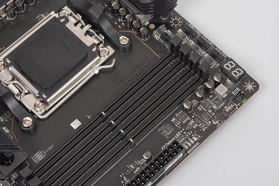 Сокет AM5 виробництва Lotes. Слоти оперативної нічим не примітні.