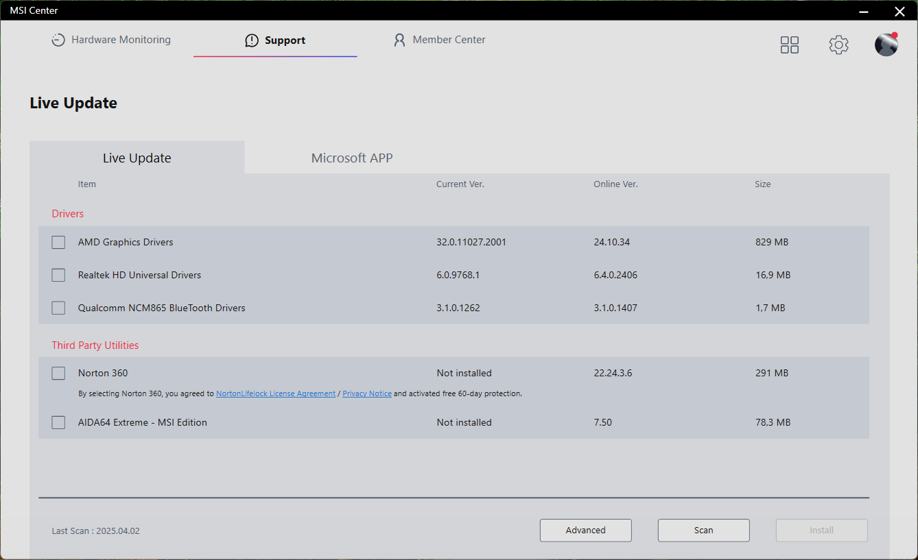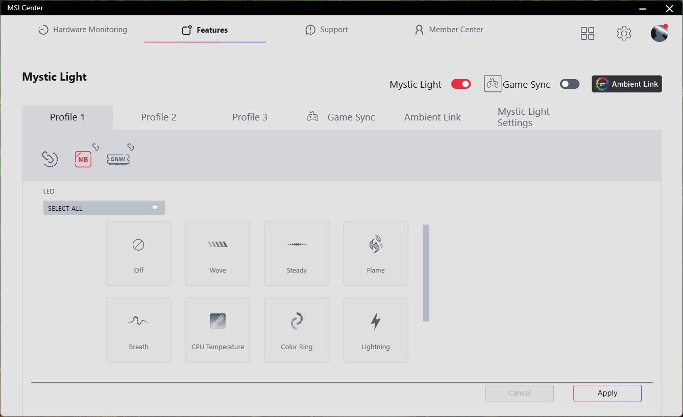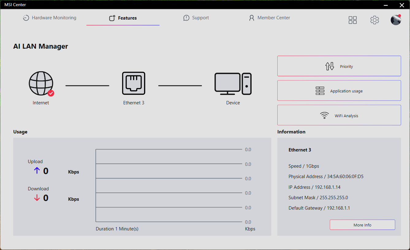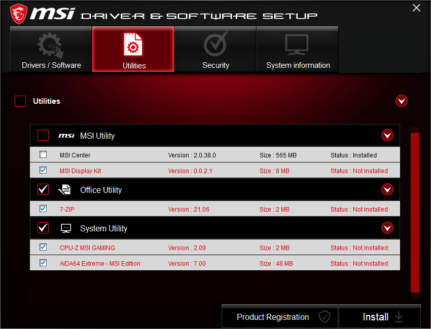 Головне ядро фірмового ПЗ виробника — MSI Center. Це модульний застосунок, який користувач самостійно налаштовує під свої завдання. Він може бути простим засобом моніторингу системи та материнської плати, але якщо необхідно — перетвориться на функціональний програмний комплекс з багатими можливостями.