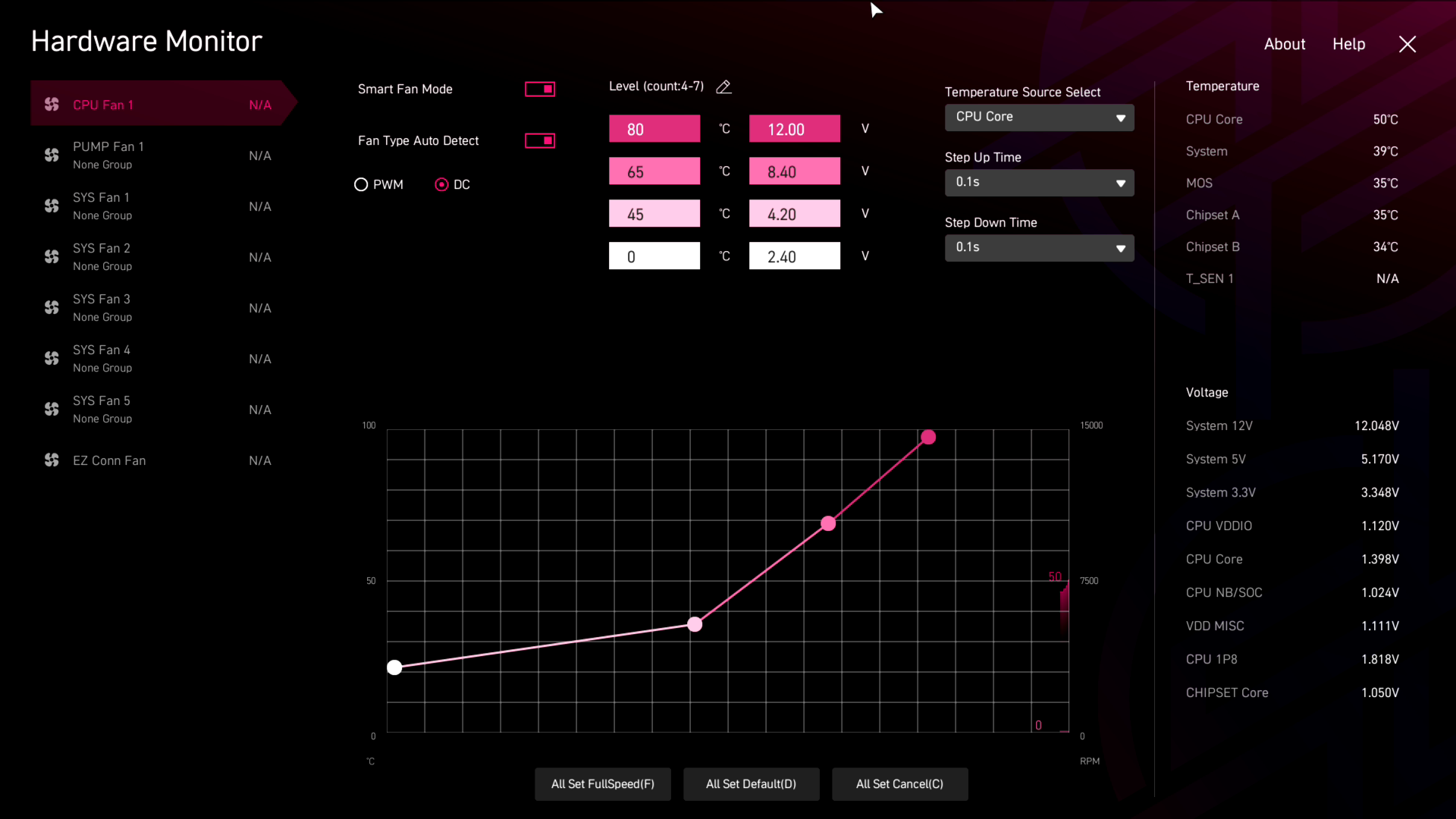 | Chipset Core Voltage (V) | 0,85–1,5 | 0,01 |