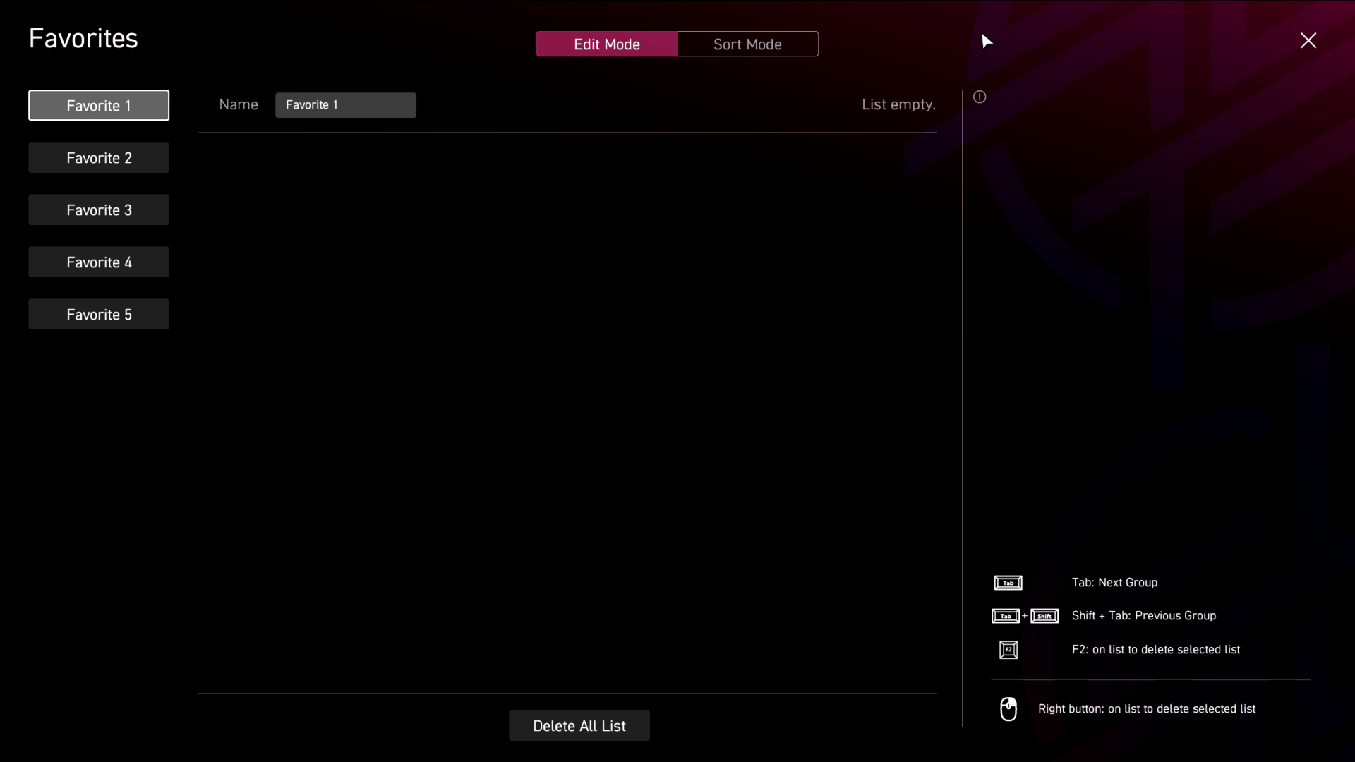 Advanced mode надає користувачу повний контроль над всім асортиментом присутніх налаштувань. Інтерфейс сегментовано на шість секцій, які відображуються в стовпці ліворуч.