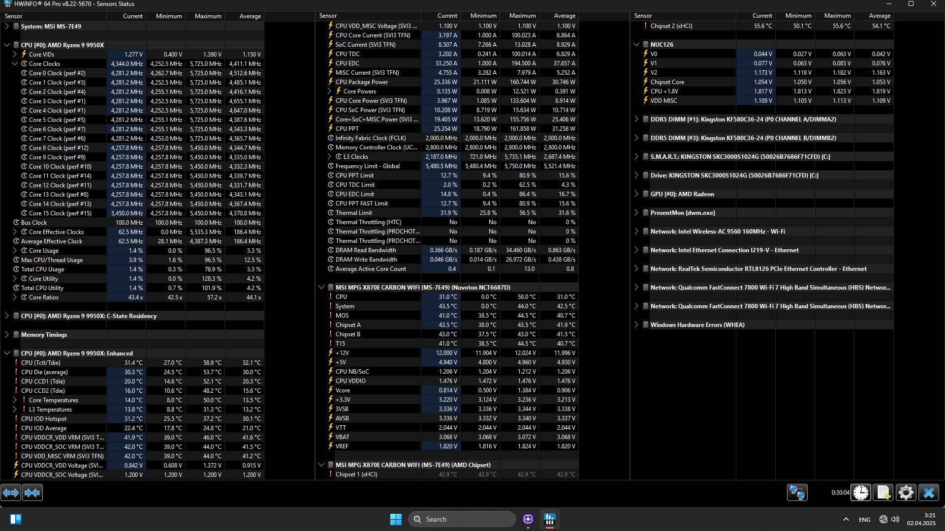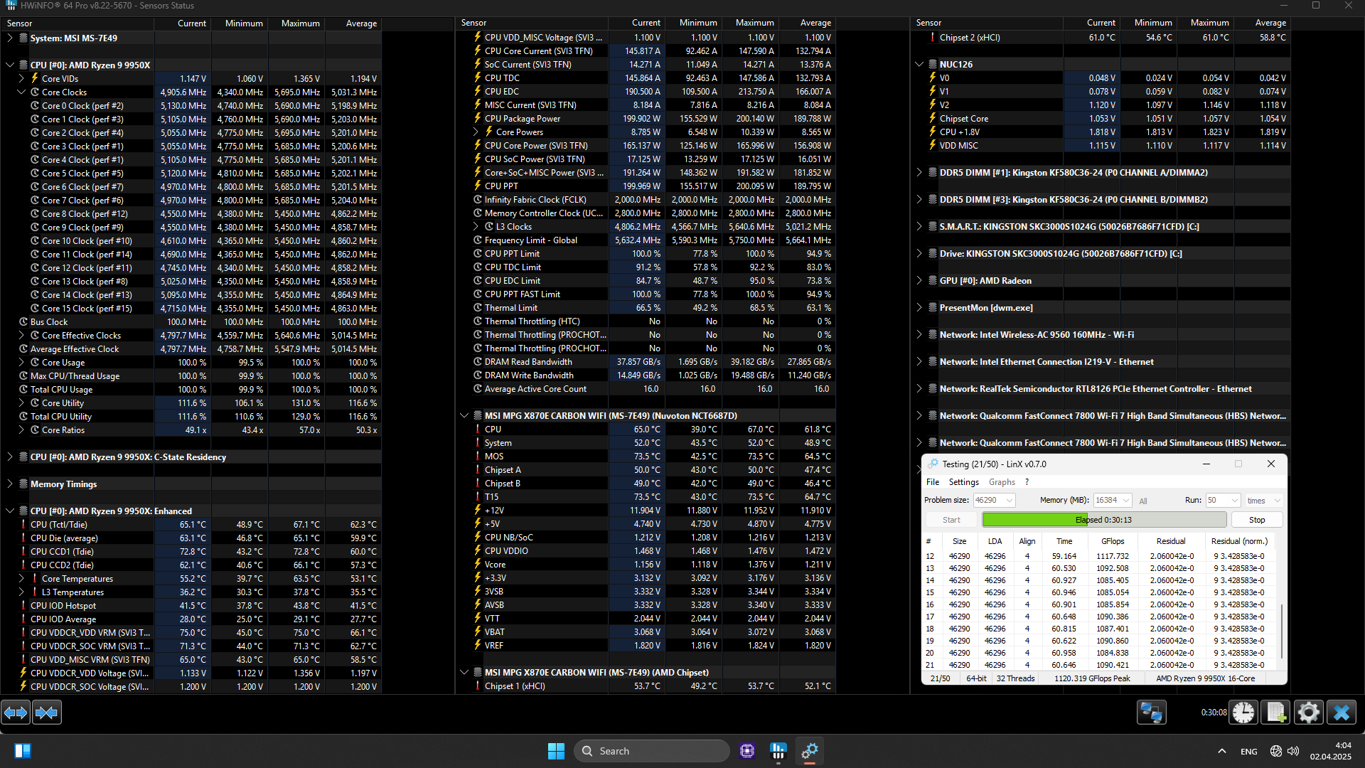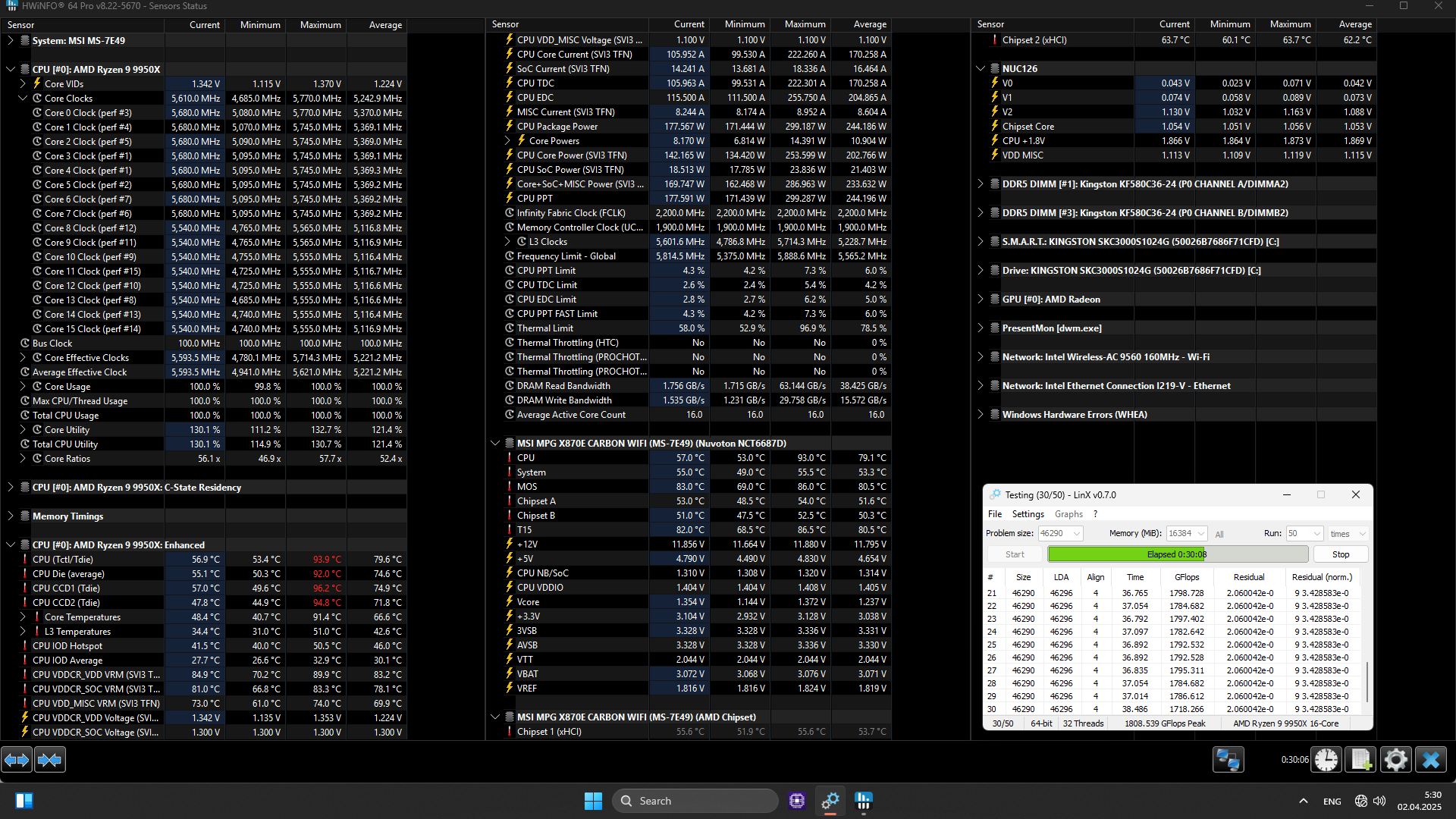 - материнська плата: MSI MPG X870E Carbon WIFI (UEFI 1.A30, AGESA 1.2.0.3a);