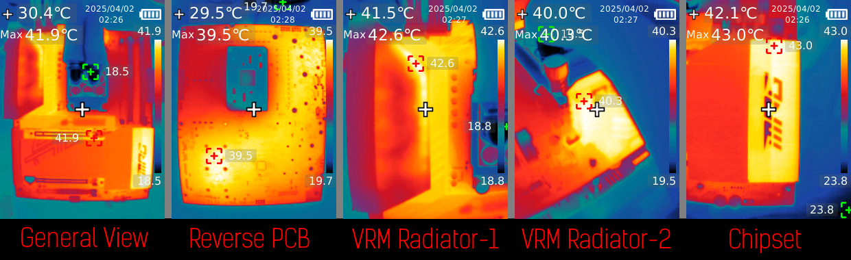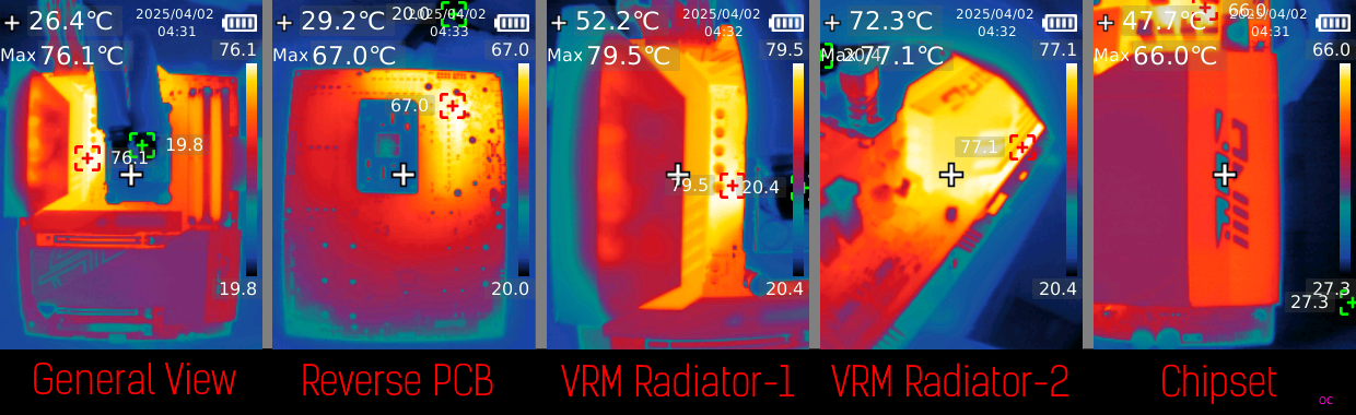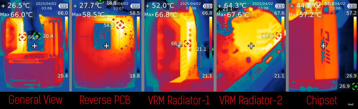 Зона VRM охолоджується двосекційним радіатором, який нанизано на теплову трубку. Одну з секцій подовжено до краю зони I/O. Радіатор фіксується на гвинтах, а контакт з силовими елементами забезпечують термопрокладки. Також радіатор відводить тепло від контролера USB4 й допоміжної плати I/O.