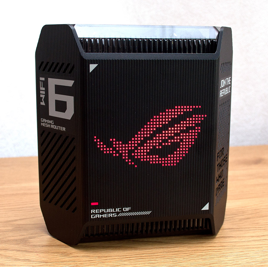 Втім, багато хто з вендорів мережевого обладнання запропонували власні рішення розширення покриття Wi-Fi та однією з таких реалізації є технологія AiMesh від ASUS. Остання дозволяє об’єднати в єдину мережу до п’яти маршрутизаторів, завдяки чому вдається досягти надійного покриття навіть у великих приміщеннях, а внаслідок безшовного роумінгу клієнти можуть переміщуватися між вузлами, не втрачаючи бездротового підключення. Безперечною перевагою AiMesh є також її відмовостійкість, яка забезпечує автоматичну перебудову мережі в разі збою в роботі або виходу з ладу одного з мережевих вузлів. І це не пусті рекламні слогани, адже ефективність роботи AiMesh була доведена на практиці в процесі тестування продуктів ASUS ZenWiFi XD6 та ASUS ZenWiFi AX Hybrid (XP4). Втім, технологію AiMesh підтримують переважна більшість наявних на ринку бездротових маршрутизаторів ASUS, в тому числі всі моделі з сімейства TUF Gaming та суббренду ROG — Republic Of Gamers. Тож поява ігрової AiMesh-системи була питанням часу і цей час настав! Зустрічайте ASUS ROG Rapture GT6 — продукт, орієнтований на любителів комп’ютерних ігор, що потребують надійного покриття Wi-Fi для великих помешкань із площею до 540 м² включно.