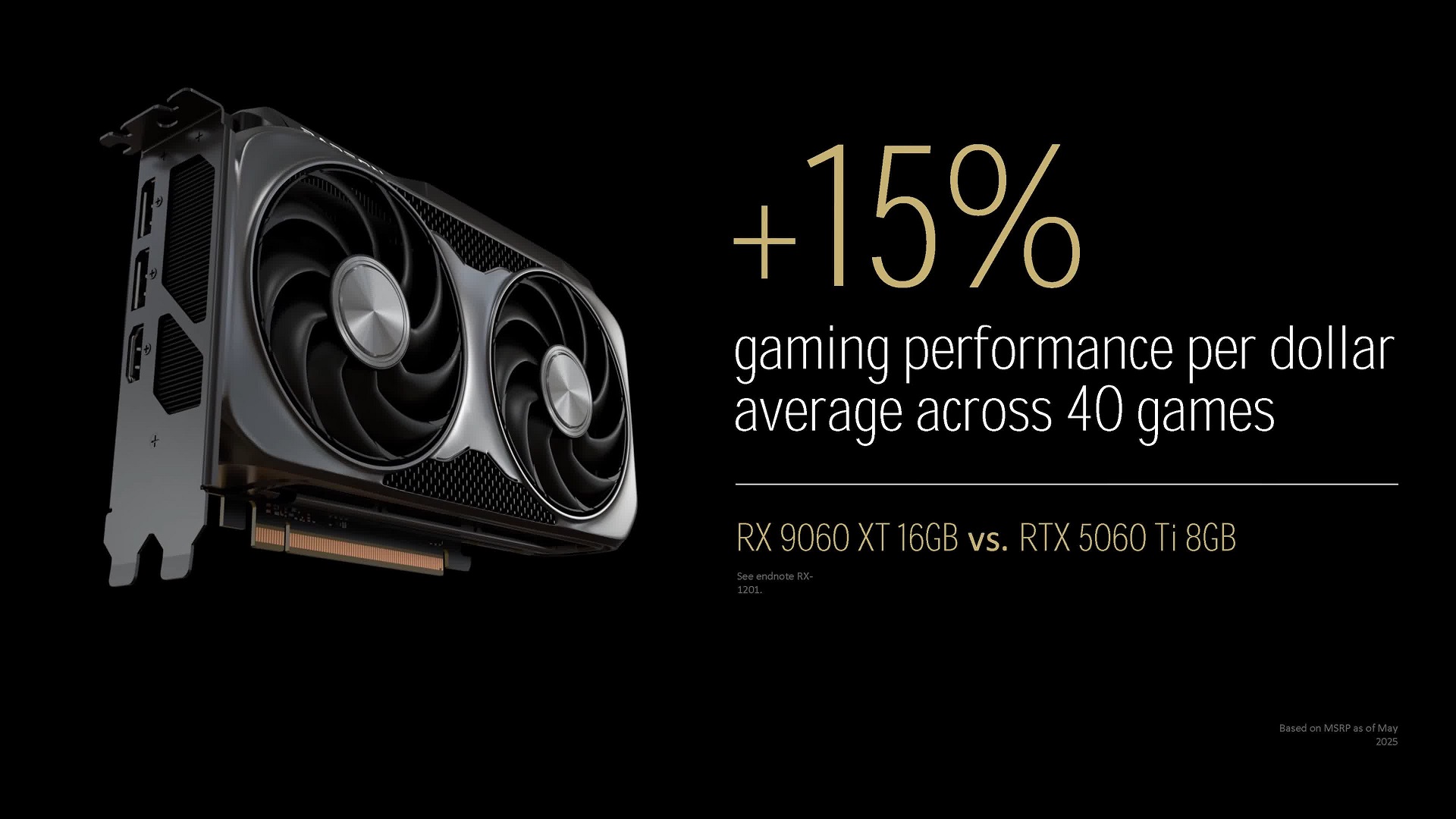 Лінійка відеокарт AMD RDNA 4‑го покоління офіційно поповнилася моделлю Radeon RX 9060 XT. Її презентація відбулася в рамках виставки Computex 2025. Новинка стала першим 3D-прискорювачем на базі графічного процесора Navi 44 та розрахована на конкуренцію з відеокартою GeForce RTX 5060 Ti.