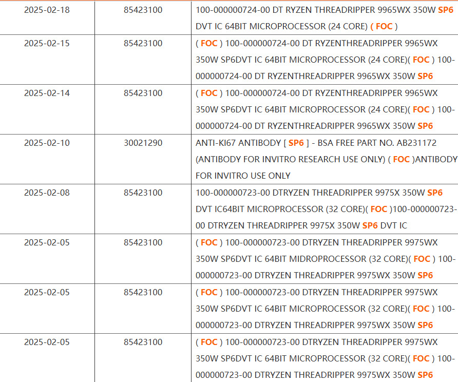 У лабораторіях AMD вже довгий час кипить робота над наступним поколінням процесорів Ryzen Threadripper, відомим під кодовим ім’ям Shimada Peak. Зараз фахівці чипмейкера зайняті тестуванням нових CPU Zen 5, що підтверджують записи в митних базах. Зокрема, нещодавно в них прописалися 24-ядерний Ryzen Threadripper 9965WX та 32-ядерний процесор Ryzen Threadripper 9975WX.