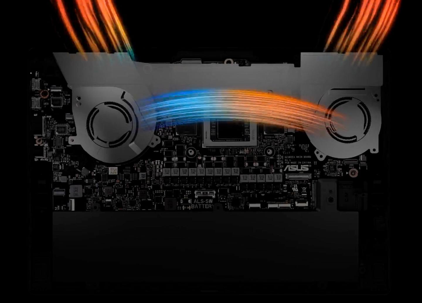 Виробник подбав про охолодження та оснастив Flow системою з випарною камерою і великим радіатором, який обдувається двома вентиляторами. Як термоінтерфейс використовується рідкий метал.