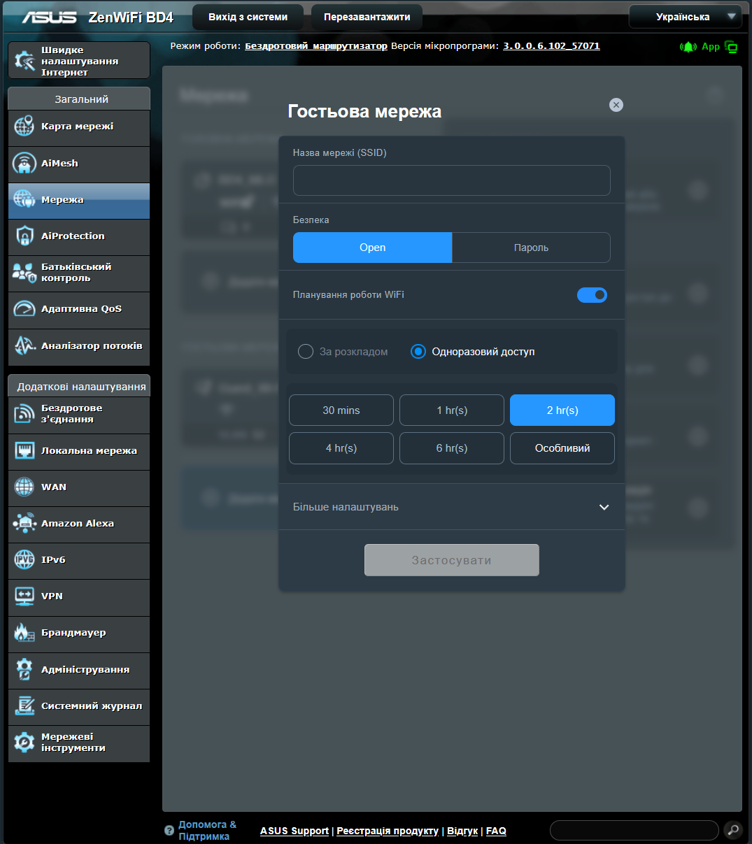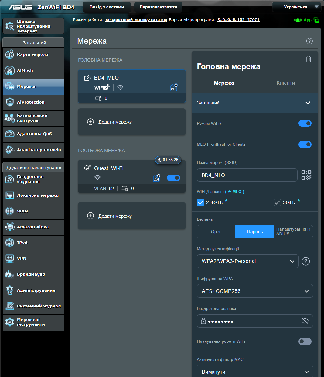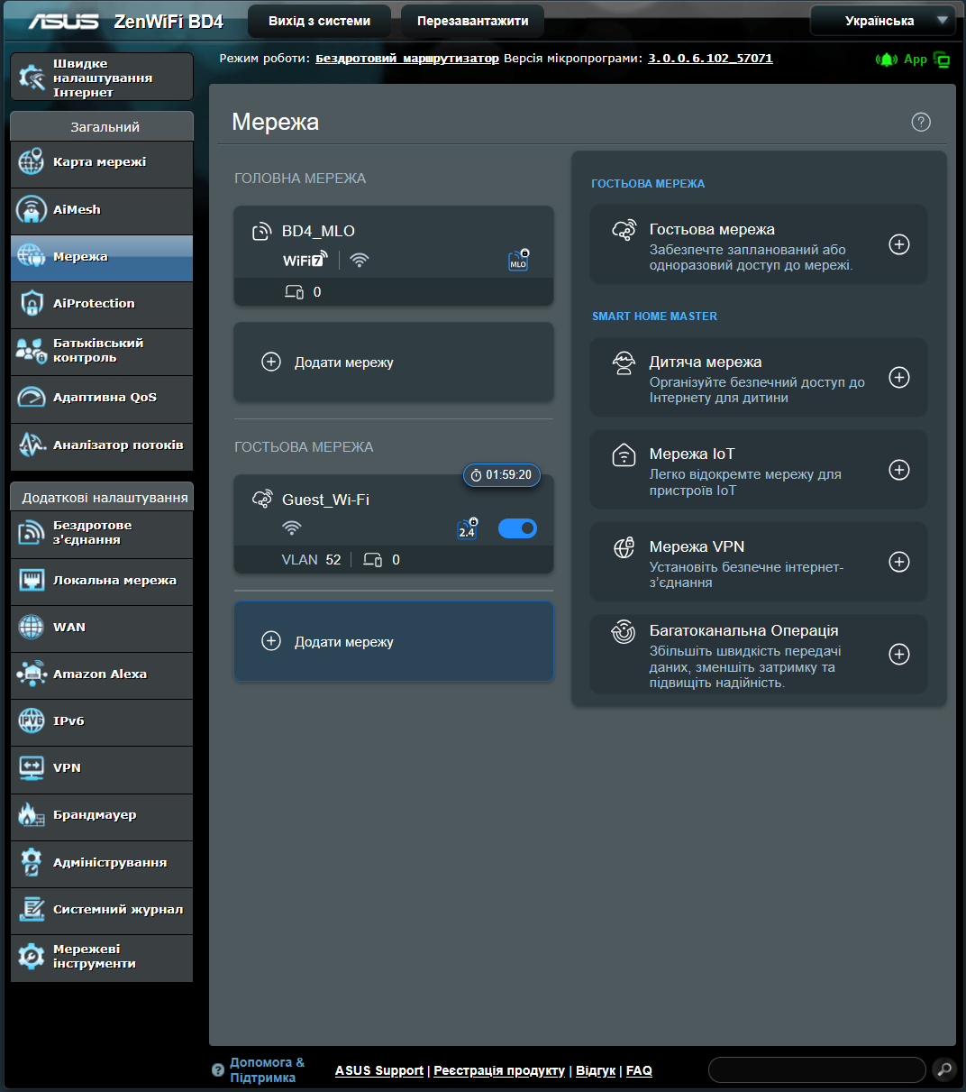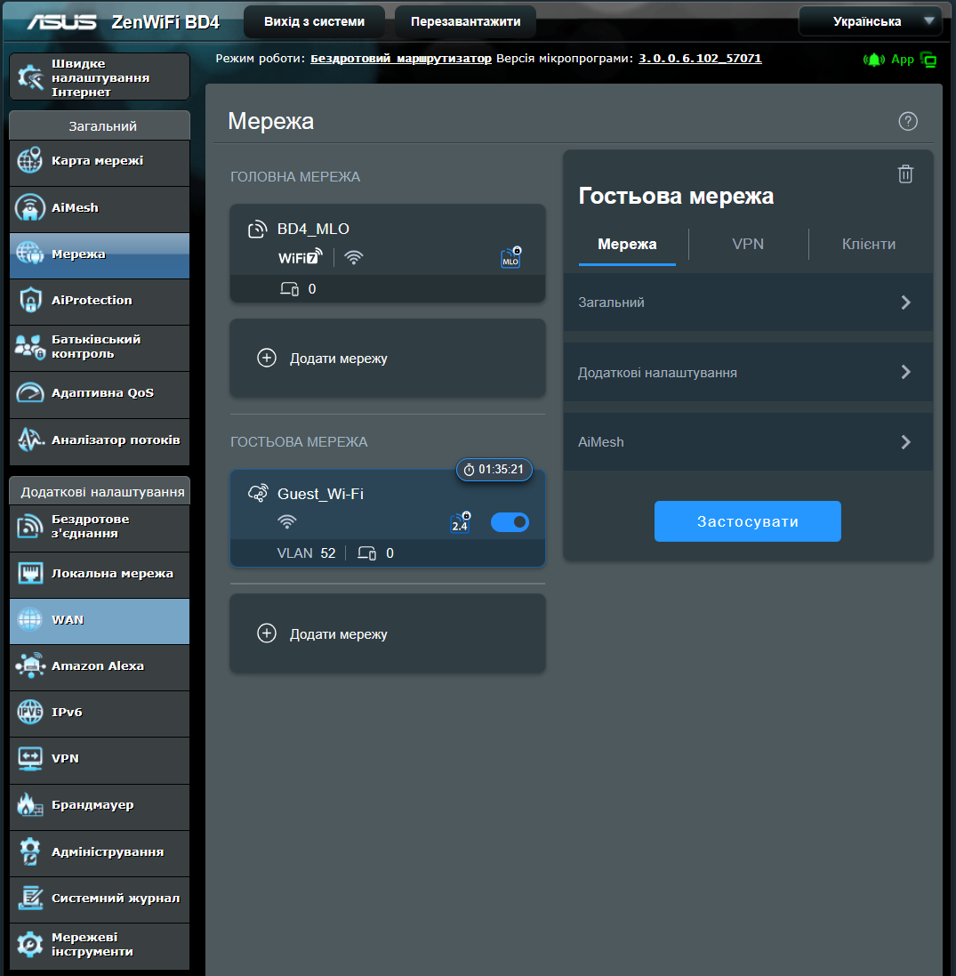 Ця функціональність присутня у всіх роутерах ASUS, які вийшли в останні роки, а також у їхніх Mesh-системах. У деяких моделях її назвали «Мережа для гостей Pro», але по суті це абсолютно те саме. Крім того, у лінійці ExpertWiFi вона також доступна, хоча в останньому випадку у нас є можливість сегментувати дротову мережу у VLAN, чого ми не можемо зробити в домашніх моделях.
