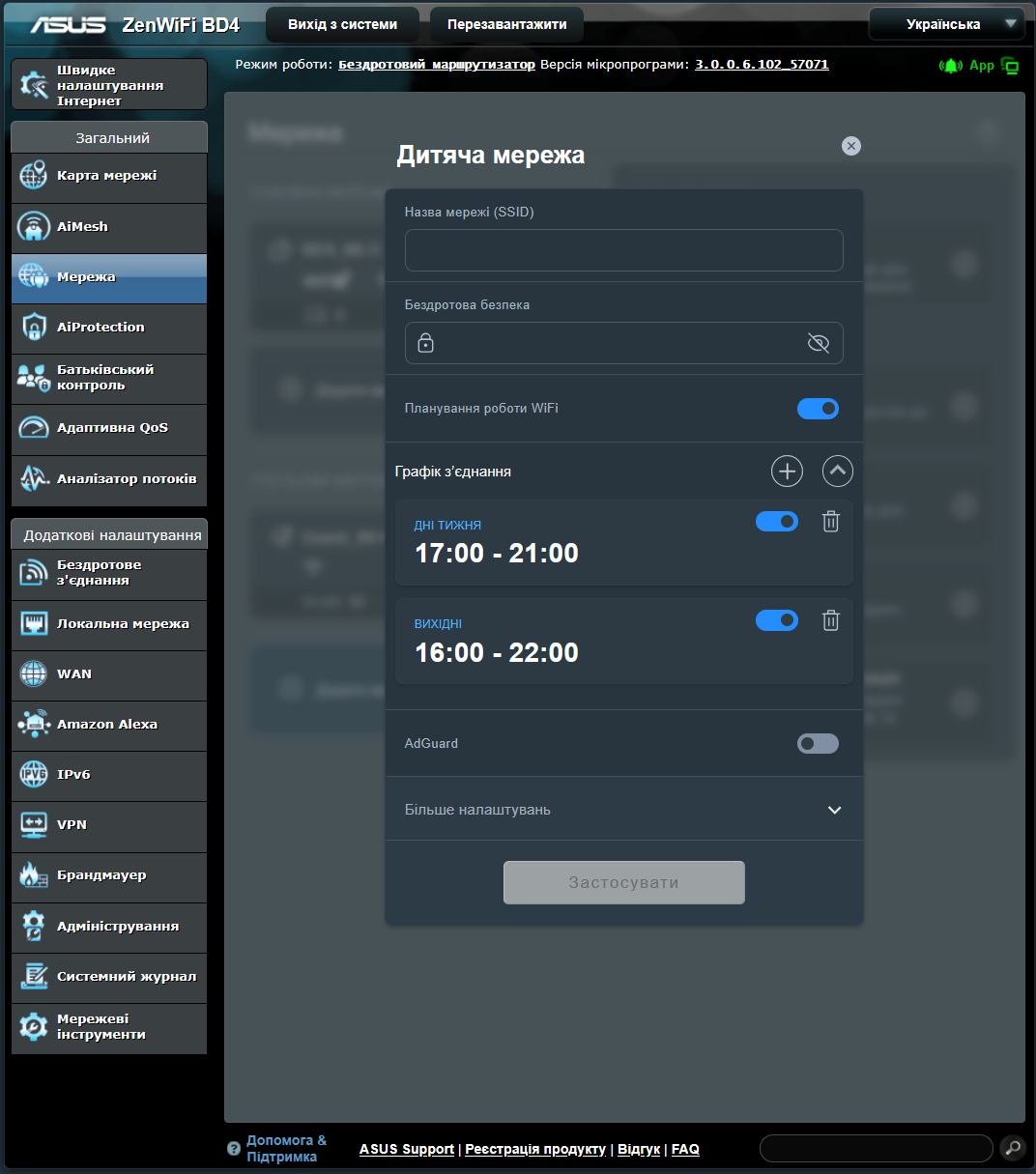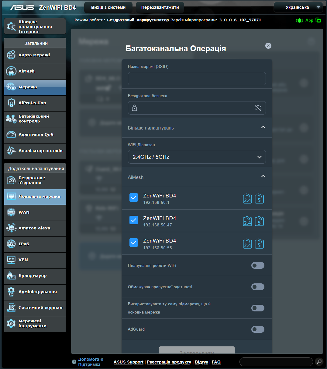 - Вузли AiMesh, де має з’являтися ця мережа.