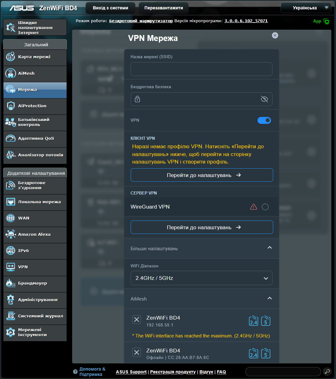 У всіх роутерах ASUS з Fusion VPN є можливість виводити трафік усіх клієнтів через VPN. Також є можливість, щоб лише певні клієнти локальної мережі виходили в Інтернет через VPN. ASUS у Smart Home Master дозволяє користувачеві створити мережу Wi-Fi з можливістю того, що всі клієнти, які підключаються до цієї конкретної мережі, виходять в Інтернет через попередньо налаштований VPN. Крім того, перебуваючи в іншій VLAN, ми також можемо призначити сервер WireGuard цій конкретній мережі.