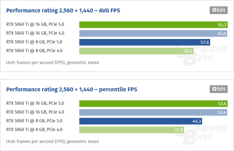 Видання ComputerBase опублікувало детальний огляд відеокарти GeForce RTX 5060 Ti, обладнаної вісьмома гігабайтами GDDR7. Серед іншого німецькі колеги поділилися результатами випробувань за різної пропускної здатності інтерфейсу PCI Express. З’ясувалося, що ігрова продуктивність 8‑гігабайтної GeForce RTX 5060 Ti в режимі PCIe 4.0 виявляється помітно нижчою, ніж при роботі на швидкості PCIe 5.0. В той самий час у 16-гігабайтної версії така проблема відсутня.