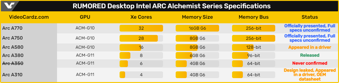 Як повідомляє німецький журналіст Ігор Валлоссек (Igor Wallossek), старші відеокарти Intel Arc A-серії по черзі дебютують у період із 5 серпня по 29 вересня, тобто протягом третього кварталу. Чипмейкер не проводитиме масштабної презентації, обмежившись формальним анонсом кожної моделі. Все це супроводжуватиметься публікацією оглядів від обраних «залізних» видань.