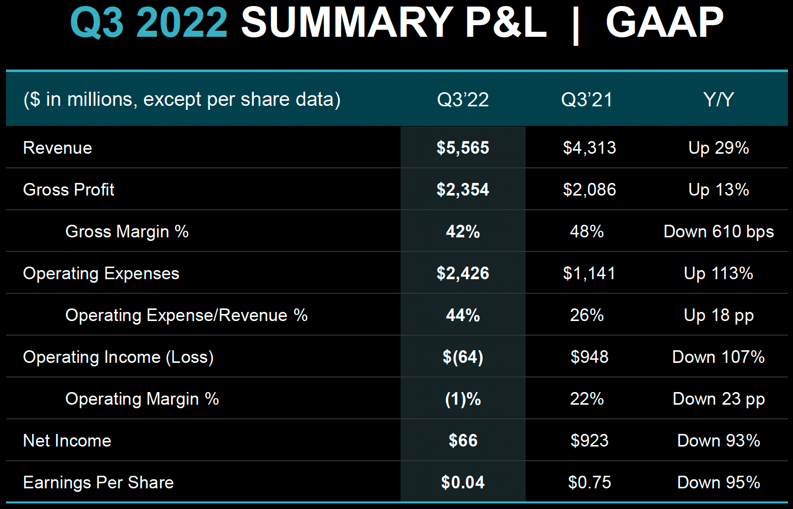 Слідом за Intel фінансові підсумки третього кварталу підвела компанія AMD. Виторг у розмірі $5,6 млрд хоч і виявився меншим за початкові прогнози, але разом з тим на 29% перевищив показники липня-вересня минулого року. В той самий час чистий прибуток Advanced Micro Devices впав відразу на 93% — до $66 мільйонів.