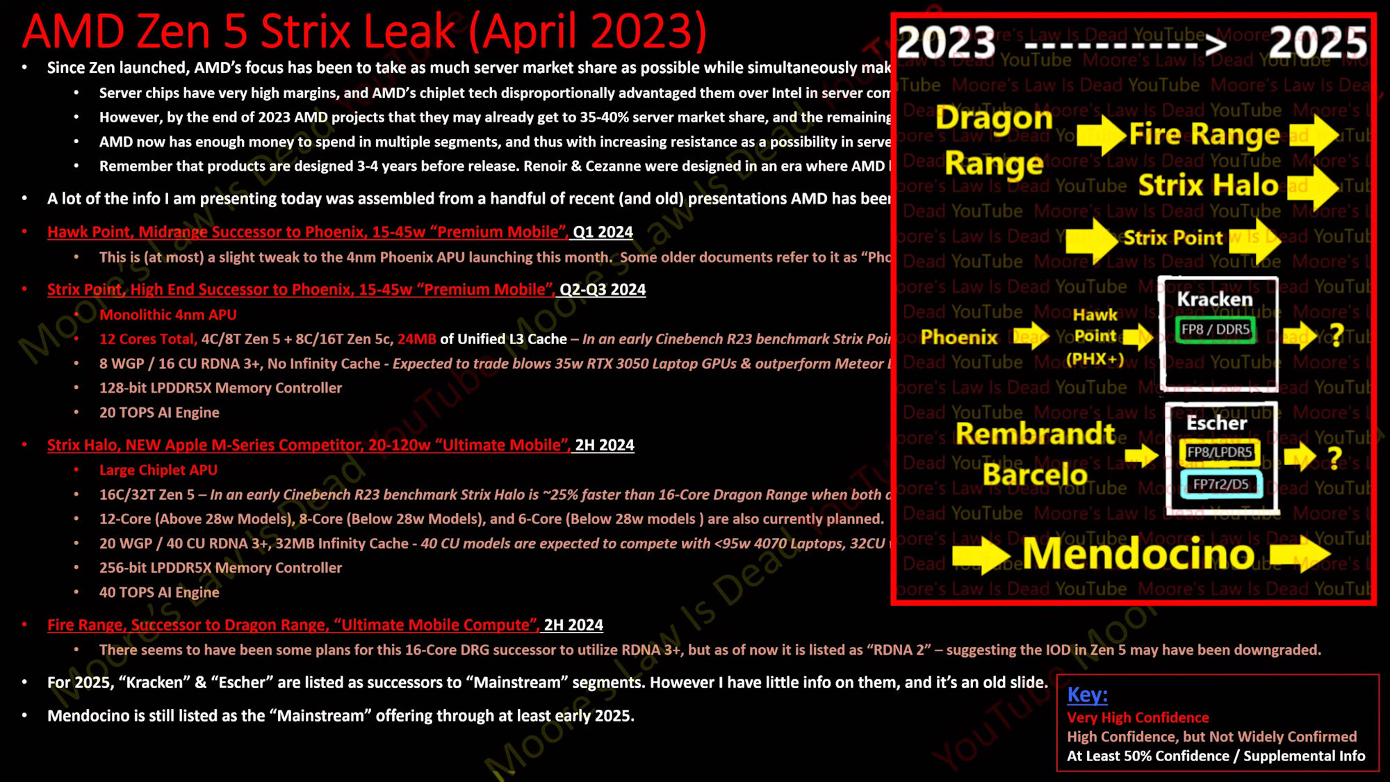 Що стосується інших сегментів ринку x86-процесорів для ноутбуків, то наступного року AMD випустить «рефреш» APU Phoenix у формі сімейства Hawk Point, а також флагманські чипи Fire Range. Вони прийдуть на зміну актуальним CPU Dragon Range і, найімовірніше, стануть аналогами десктопних процесорів Zen 5 у конструктивному виконанні BGA. В той самий час заміни для чипів початкового рівня AMD Mendocino поки не планується.