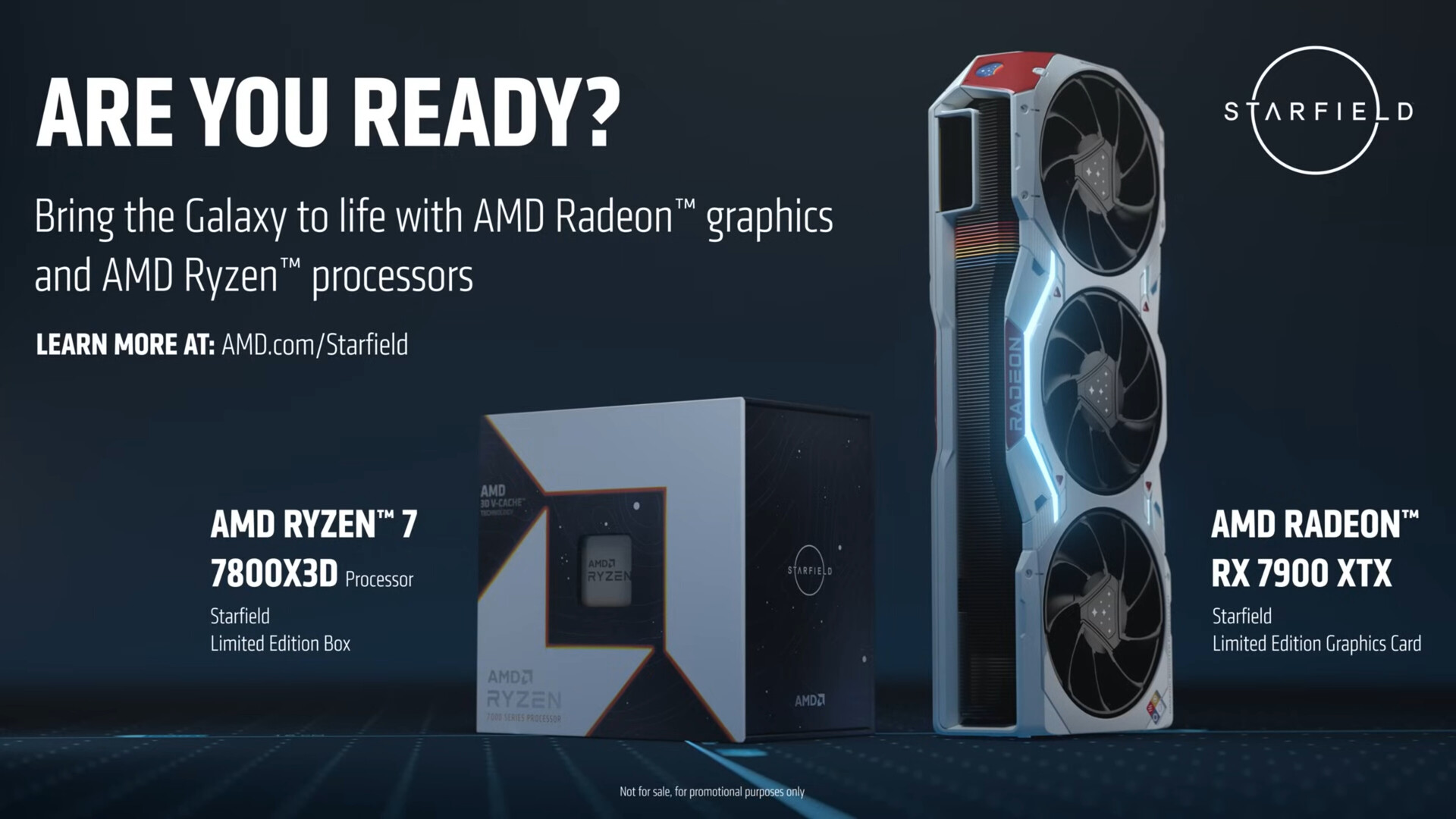 У рамках партнерства з Bethesda компанія AMD не лише допомагає оптимізувати Starfield, але й підготувала обмежену серію Radeon RX 7900 XTX та Ryzen 7 7800X3D. Відеокарта та процесор отримали відмітку Starfield Limited Edition й будуть випущені тиражем всього 500 екземплярів. У вільний продаж новинки не надійдуть. Натомість AMD розіграє їх під час різних заходів та конкурсів.