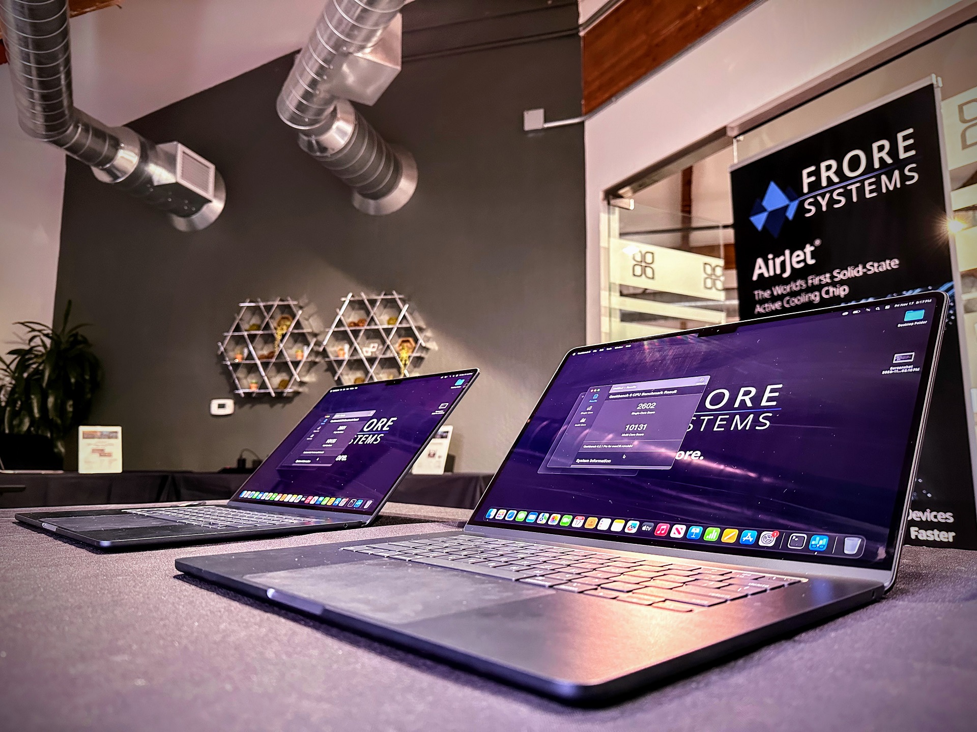 Стартап Frore Systems влаштував чергову демонстрацію можливостей ультразвукової системи охолодження AirJet. Вона, наприклад, вже була взята на озброєння компанією Zotac, яка оснастила таким кулером міні-ПК ZBox PI430AJ. Ще однією сферою застосування AirJet є тонкі та легкі ноутбуки, що компанія вирішила показати на прикладі Apple MacBook Air.