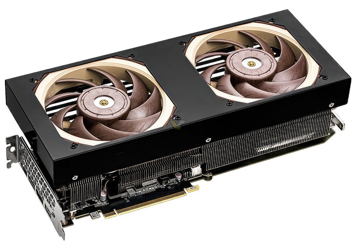 Відеокарта виконана у фірмових тонах Noctua. У неї немає RGB-підсвічування та яскравих декоративних елементів.