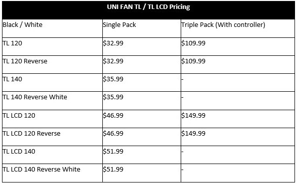 Офіційний старт продажів 120-/140-мм вентиляторів Lian Li UNI Fan TL та UNI Fan TL LCD намічено на сьогодні. Рекомендовані ціни наведені у таблиці.