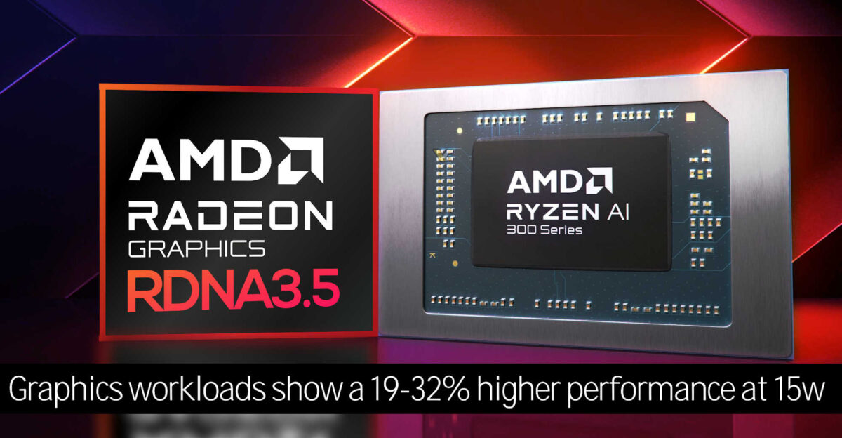 У процесорах AMD Ryzen AI 300 графічний блок виконаний на архітектурі RDNA 3.5 та налічує до 16 Compute Units (CU). Це 4 CU більше, ніж можуть запропонувати чипи Ryzen 7040/8040. Разом з поліпшеннями архітектури RDNA 3.5, серед яких подвоєння швидкості вибірки текстур і швидкості інтерполяції та порівняння, а також поліпшеним керуванням пам'яттю, це забезпечує новинкам непогану надбавку швидкодії.
