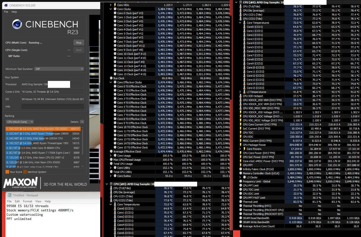 У Мережі продовжують з'являтися нові результати тестування процесора AMD Ryzen 9 9950X — майбутнього флагмана платформи AM5. Цього разу новинка була випробувана в Cinebench R23 з різними налаштуваннями енергоспоживання, зокрема зі знятими обмеженнями. Доречі, раніше AMD поділилася результатами цього бенчмарка від власної оверклокерської команди.