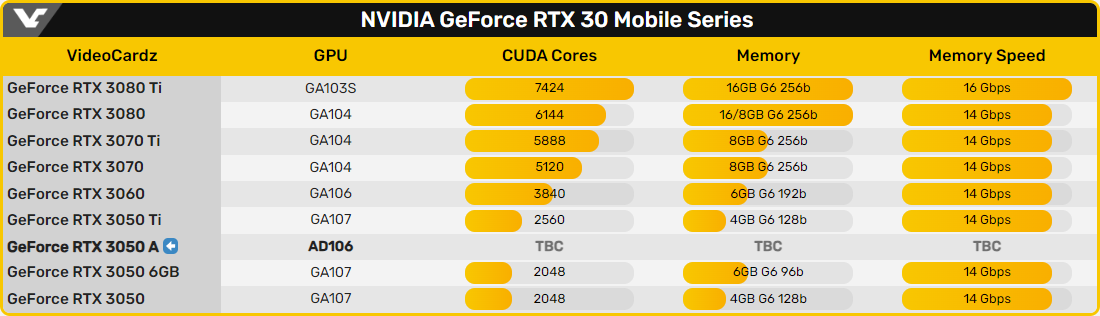 Модельний ряд відеоадаптерів GeForce RTX 30-ї серії для ноутбуків у найближчому майбутньому поповниться новим варіантом GeForce RTX 3050. Пристрій під назвою GeForce RTX 3050 A Laptop GPU було помічено в базі даних PCI-ID. У його основі, згідно з наданою інформацією, лежить графічний процесор Nvidia AD106 з архітектурою Ada Lovelace. Нагадуємо, що випущені раніше варіанти GeForce RTX 3050 Laptop базувалися на кристалі GA107 (архітектура Ampere).