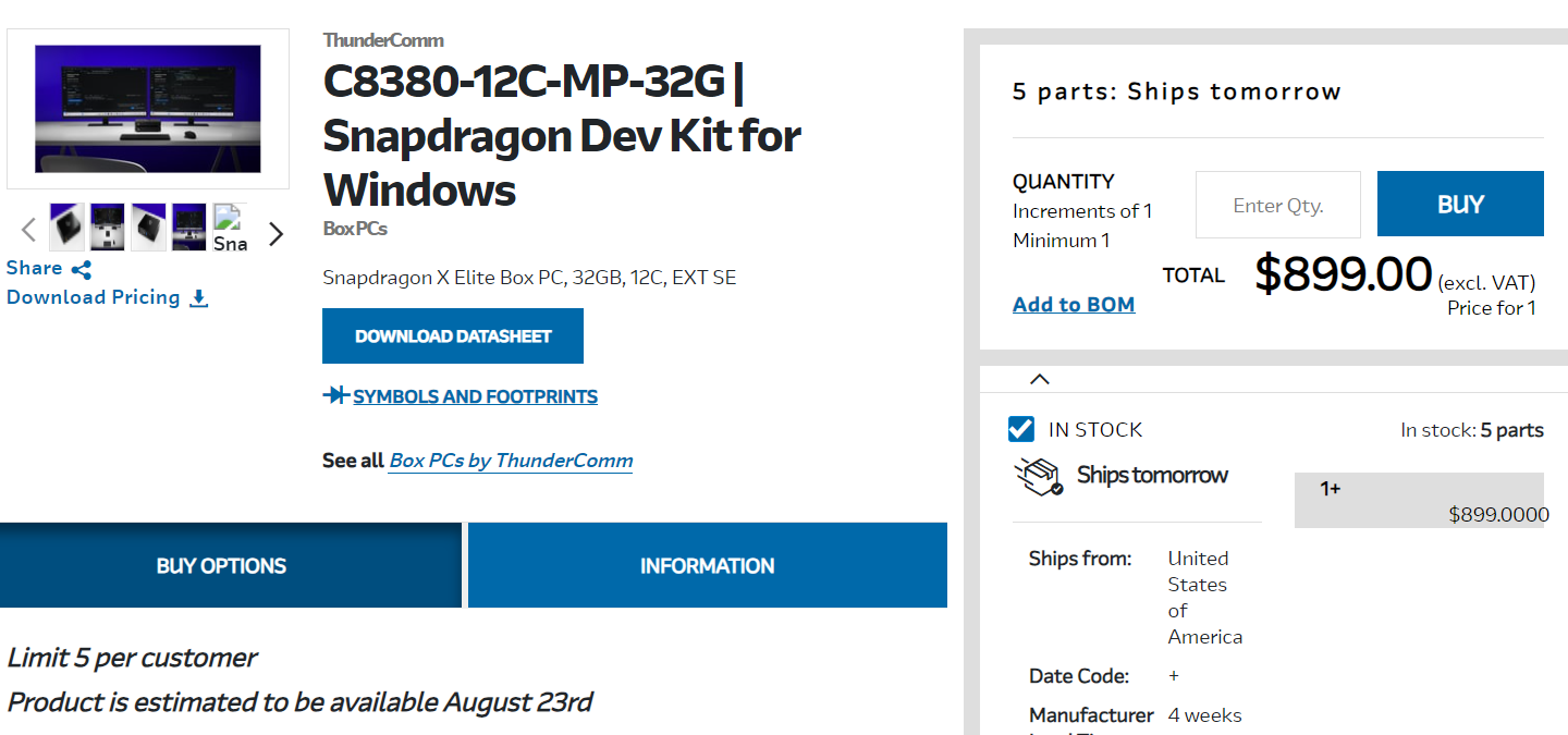 До продажу надійшов перший міні-комп'ютер класу Copilot+ PC, виконаний на платформі Qualcomm Snapdragon X Elite. Пристрій позиціюється як комплект для розробників та доступний для замовлення в закордонних магазинах за ціною від 899 доларів. Формально це найдешевший комп'ютер з однокристальною системою Snapdragon X. Старт поставок новинки заплановано на 23 серпня.
