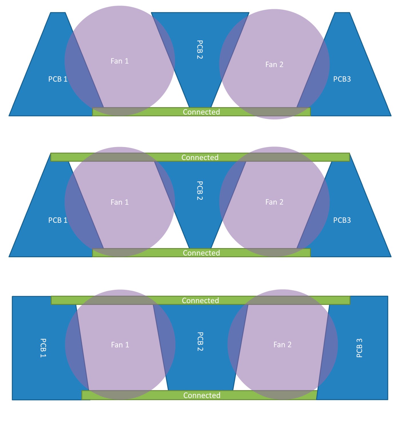 У Мережі вже була інформація, що Nvidia хоче створити нове рішення в компактному двослотовому форматі з двома вентиляторами. Досягнуто це буде за рахунок унікальної інноваційної конструкції. Нижче представлено три схеми того, як це може виглядати.
