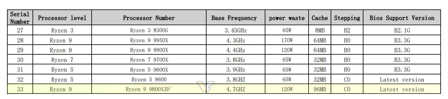 Партнери компанії AMD вже не приховують наближення релізу процесорів Ryzen 9000X3D із технологією 3D V-Cache. Минулого тижня Gigabyte пообіцяла прискорити майбутні процесори за допомогою функції X3D Turbo Mode, а цього разу відзначилася MaxSun. Вона згадала модель Ryzen 7 9800X3D у списку підтримуваних процесорів для платформи AM5, тим самим розкривши основні параметри новинки.