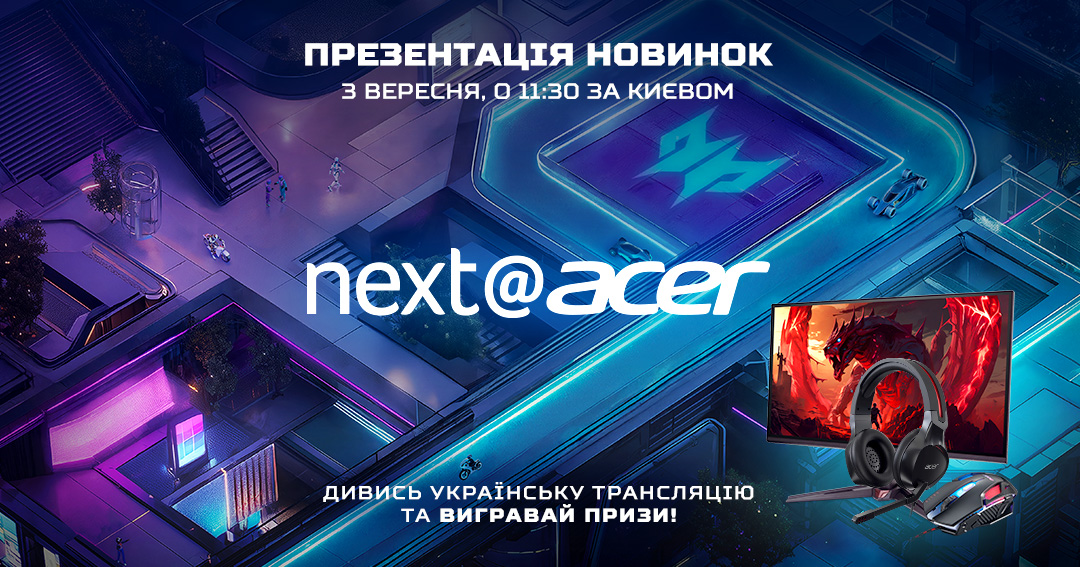 Як і в минулі роки, українське представництво Acer влаштує окрему трансляцію з Києва, а щоб підігріти інтерес до трансляції вендор проведе розіграш призів. Стежити за презентацією next@Acer можна як у цьому матеріалі, так і на офіційному YouTube-каналі Acer Ukraine. Серед глядачів будуть розіграні ігровий монітор Nitro VG240YG, гарнітура Nitro Headset і миша Nitro Mouse, а також фірмові подарунки від бренду Predator.