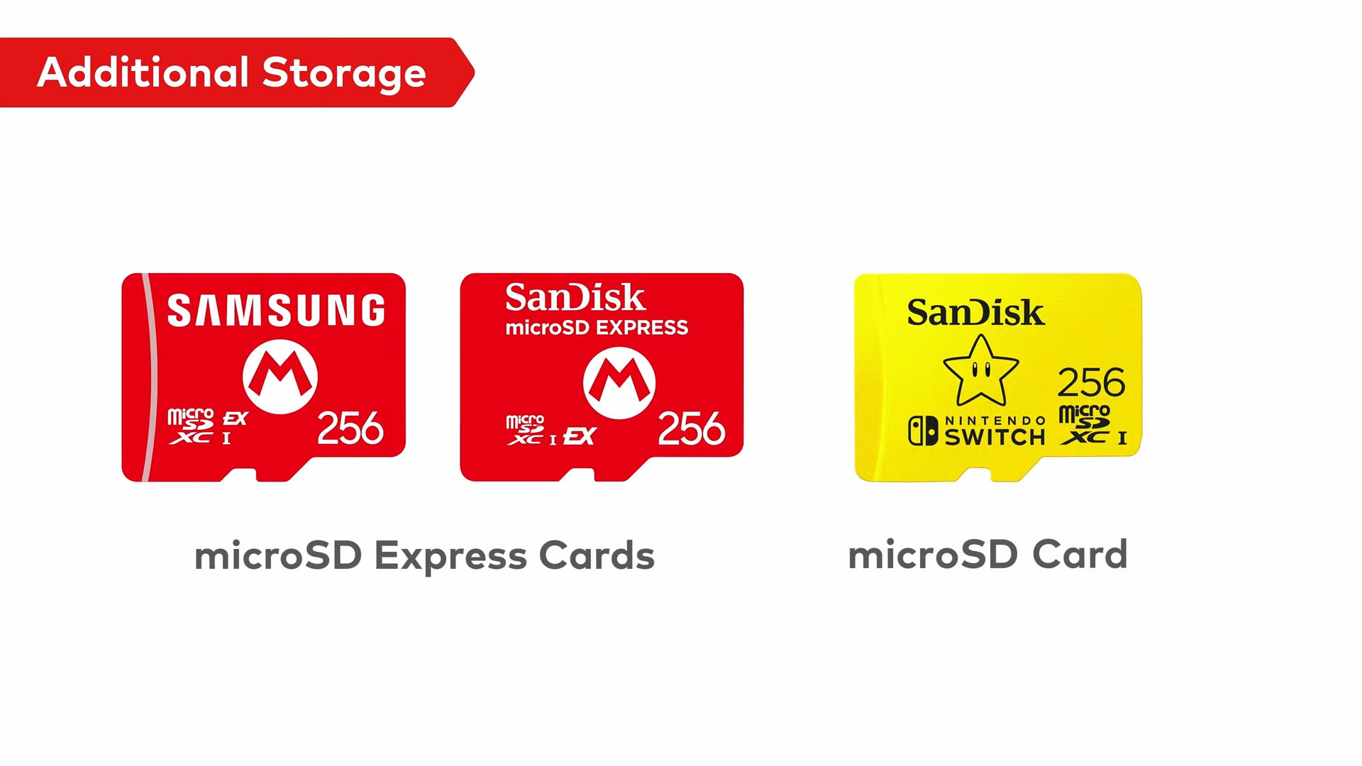 Іншим важливим нововведенням стала підтримка роздільної здатності 4K при використанні док-станції. Пристрій отримав вбудоване твердотіле сховище об’ємом 256 ГБ, передбачена можливість використання карт пам’яті microSD Express. Ігри для Switch 2 будуть поставлятися на Game Card червоного кольору. З іншого можна відзначити функцію GameChat для спілкування з друзями, причому на контролері з’явилася окрема кнопка «C».