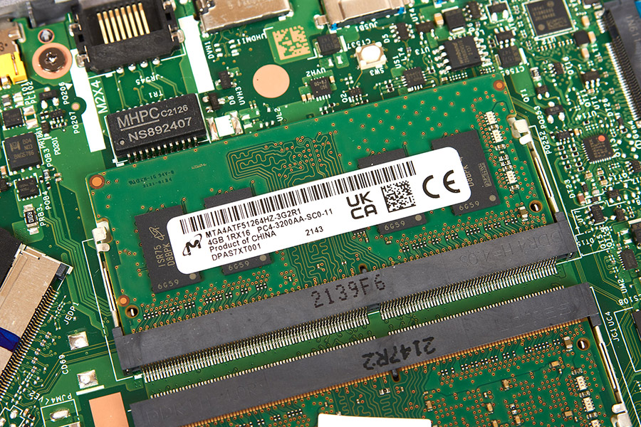 Встановлено два модулі SO-DIMM DDR4-3200 (MTA4ATF51264HZ-3G2R1) обсягом 4 ГБ кожен виробництва Micron. Це добре, коли є можливість замінити ОЗП та збільшити його обсяг за потреби.