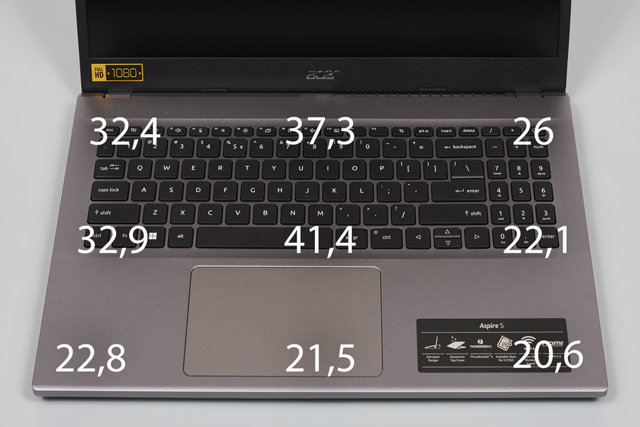 Клавіатура острівного типу з цифровим блоком, що оцінять люди, які працюють з великою купою даних. На відміну від старих ноутбуків Aspire вона не знаходиться в улоговині, а плавно перетікає до основи корпусу з боків. Підсвітки не передбачено, що трохи дивно, адже в Aspire 5 вона колись була.