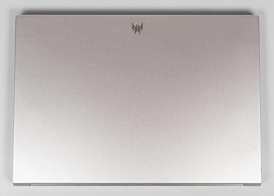 Розміри пристрою дорівнюють 356x249,2x20,83 мм при вазі лише 2,05 кг, що не перевищує характеристики 15-дюймових ноутбуків. Верхню кришку прикрашає лише логотип серії Predator, ніякого RGB, що сподобається консервативним користувачам. Кришка по краю прямокутна та без фасок, але ніякого дискомфорту, коли береш лептоп у руки, при цьому немає.
