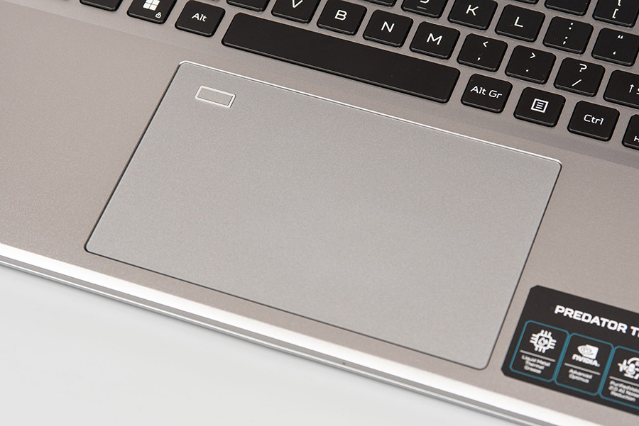Ноутбук оснащено клавіатурою острівного типу без цифрового блоку, але з мультимедійними клавішами з правого боку. Є також кнопка для швидкого запуску фірмового застосунку Predator Sense та окрема клавіша перемикання режиму роботи пристрою.